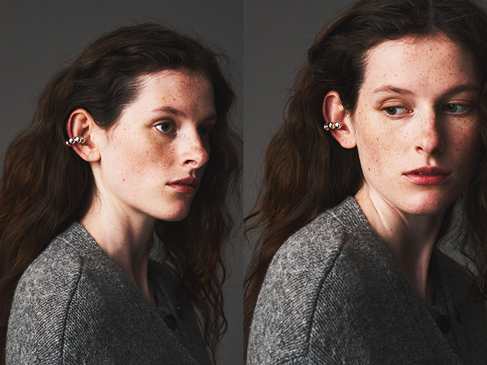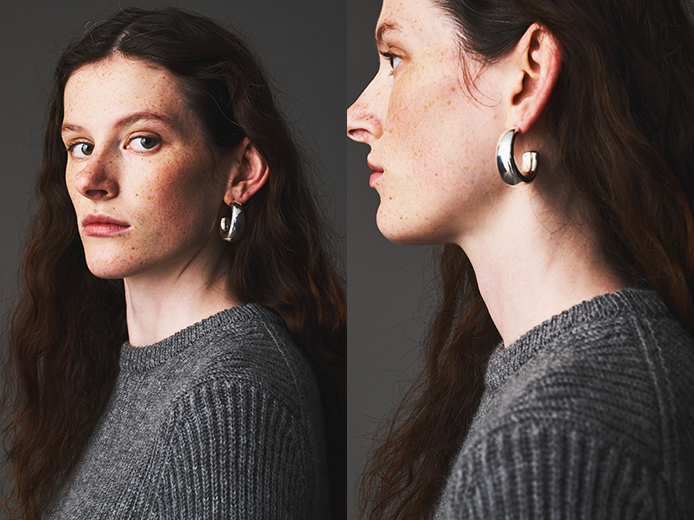 立体感のあるモダンなフォルムや美しく練り込まれたディテールが耳元を引き立て、顔まわりに洗練された印象を与えます。