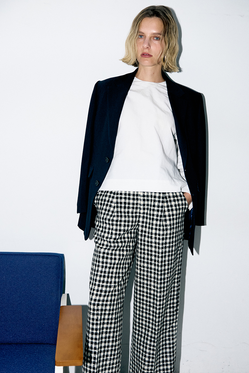 今シーズン人気のデニムルックを端正なトラッドスタイルに、ブラックにネイビーで魅せる洗練された着こなしに、ギンガムチェックパンツとホワイトブラウスで春らしい軽快なルックに、一着で色々な着こなしを楽しめます。