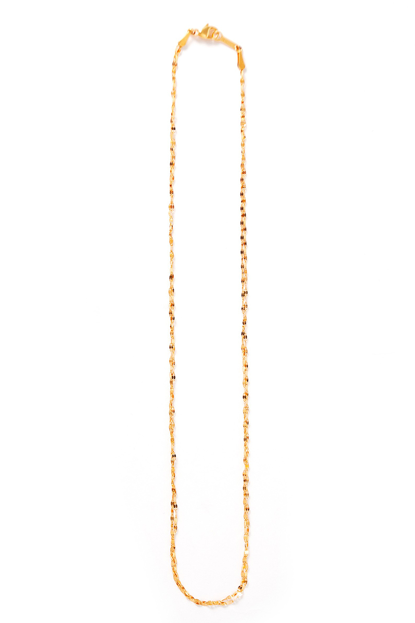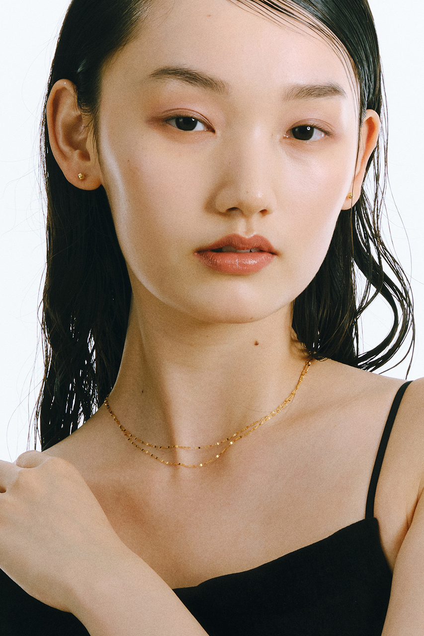 繊細な2本のチェーンが重なり合うデザインは、動くたびに表情を変え首元にやわらかな光を宿します。その控えめながらも印象的な存在感は、ニットやタートルネックにも洗練された華やぎをプラス。自分へのご褒美はもちろん、大切な人へのギフトにも最適な、冬の季節を彩るネックレスです。