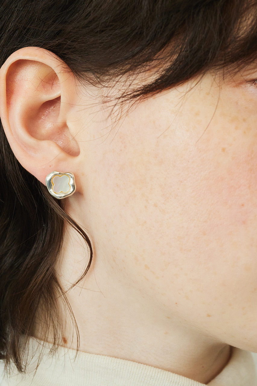 シェルのまろやかなゆらめきが、冬の陽光でほんのりとその色味を変え、まとう人の雰囲気に柔らかなニュアンスを与えてくれます。ひとつで、凛とした気持ちにも、ちょっとした遊び心にも応えてくれる大人のアクセントです。