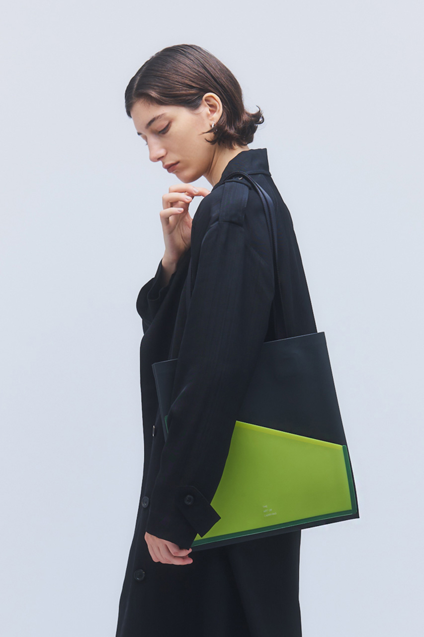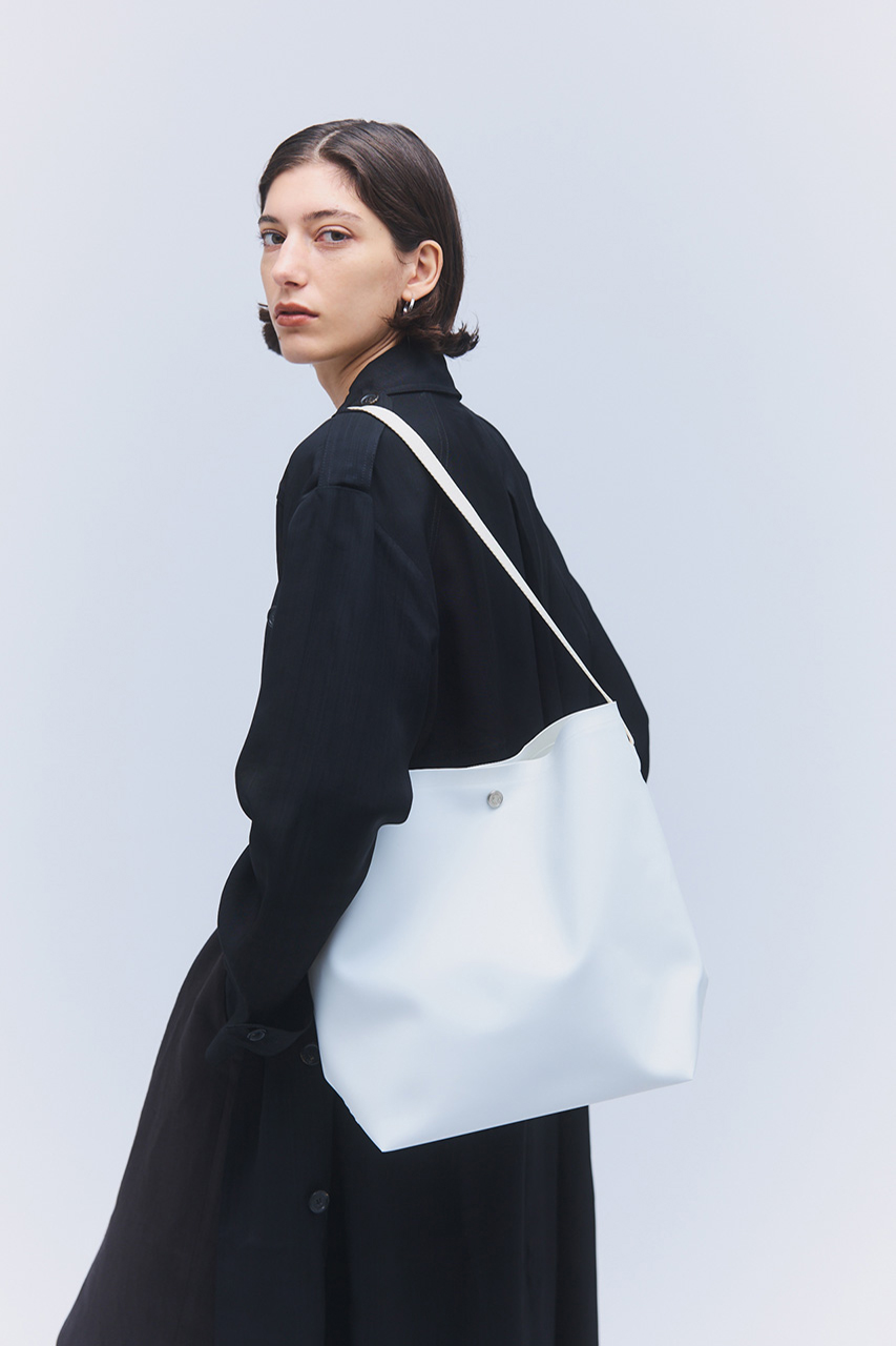 洗練されたミニマルデザインが魅力のワンハンドルバッグ「PAPER F」。そぎ落としたシルエットに、TPU素材がカーフレザーのような上質感を演出。デイリーからオフィスまで自然に馴染みます。紙袋のようにフラットに畳める仕様で、旅行や出張にも便利。大容量ながら女性らしさを引き立てる上品な佇まいが光る一品。
