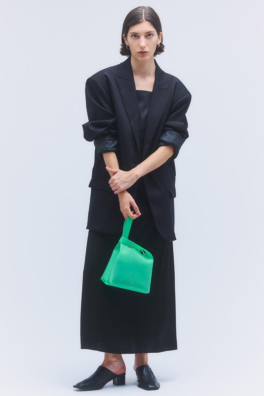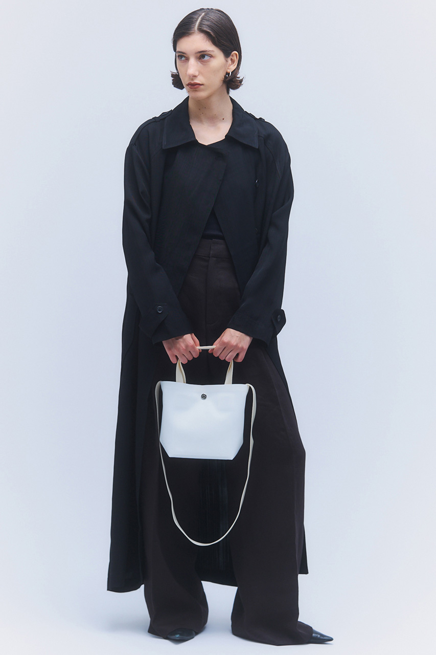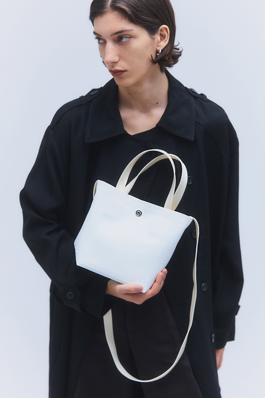 手持ち・肩掛けの2WAY仕様で、平日のランチ外出や休日の美術館巡りにも自然に馴染むミニマルバッグ。必要なものだけをスマートに持ち歩きたい、そんな日に静かに寄り添う存在です。濁りのないフォルムが装いをすっと引き締めます。
