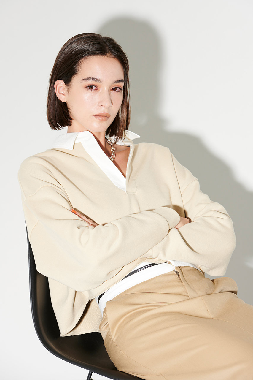 ショートな着丈とゆとりのある身幅が旬な着こなしを叶える、大人の女性のためのラガーシャツ。柔らかいコットン生地で、さらっとした着心地がうれしい。