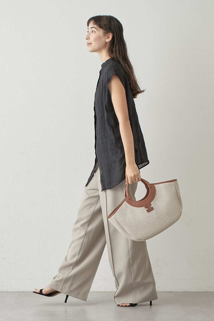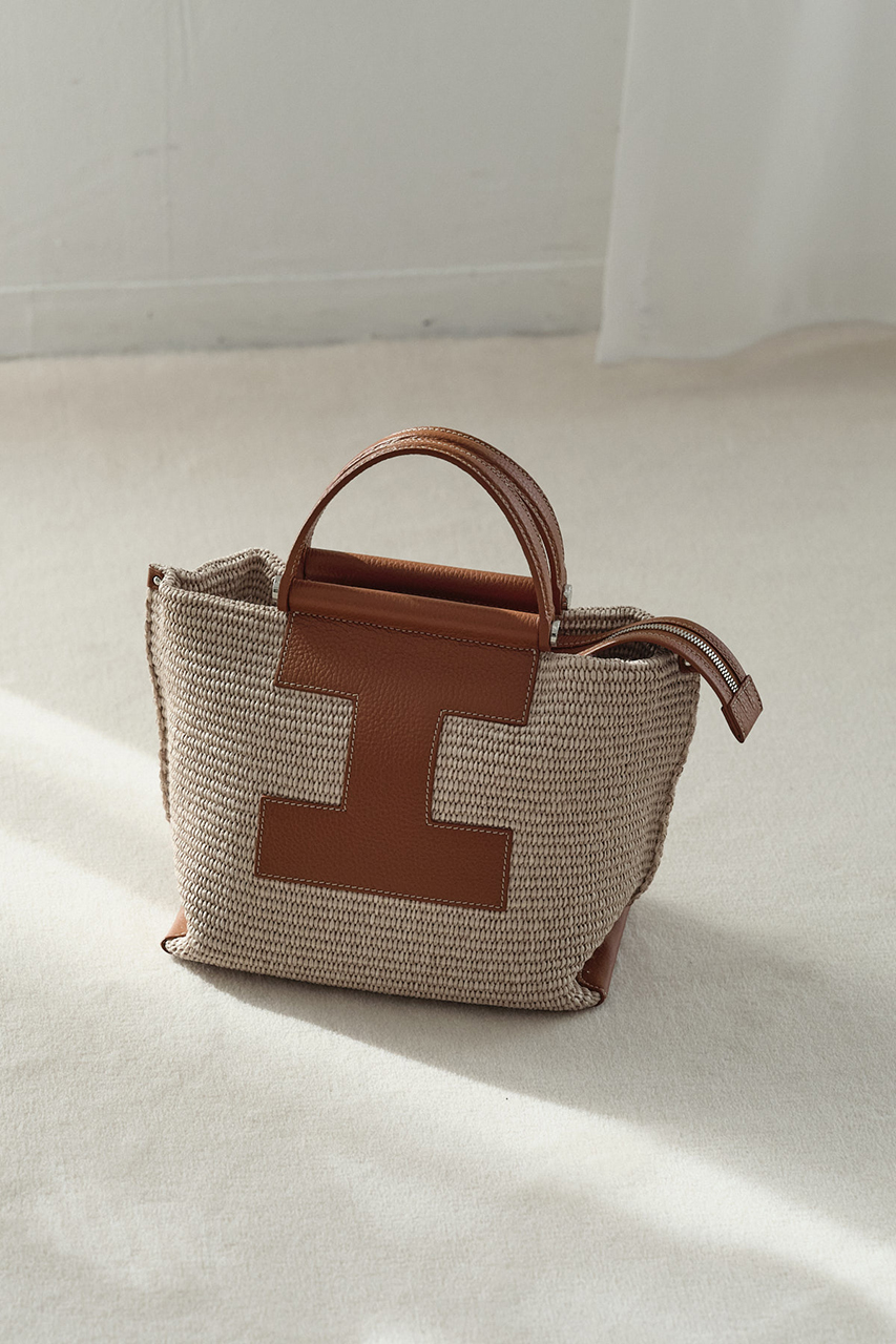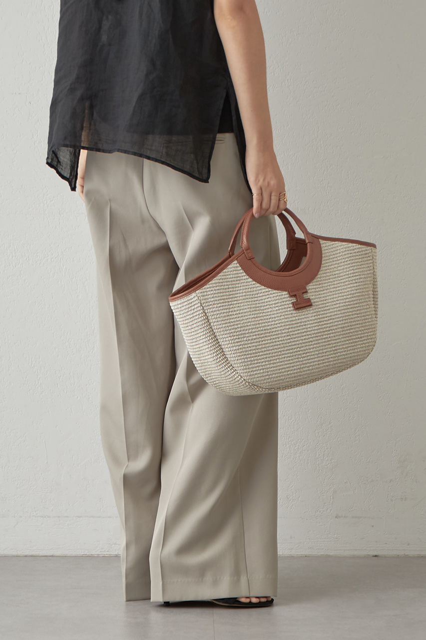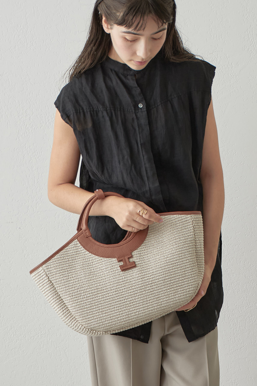 ストロー調素材とレザーを組み合わせた大人の夏バッグ。シーズンムード高まるアイテムですが、カラーはベーシックにキャメルをセレクトすることでスタイルを問わずに活躍するアイテムに仕上がりました。