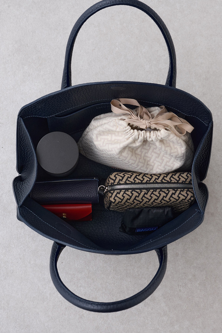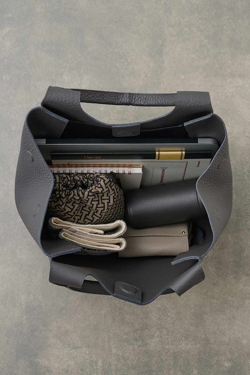 使うほどに馴染む革の質感を味わえる大きめトートバッグです。