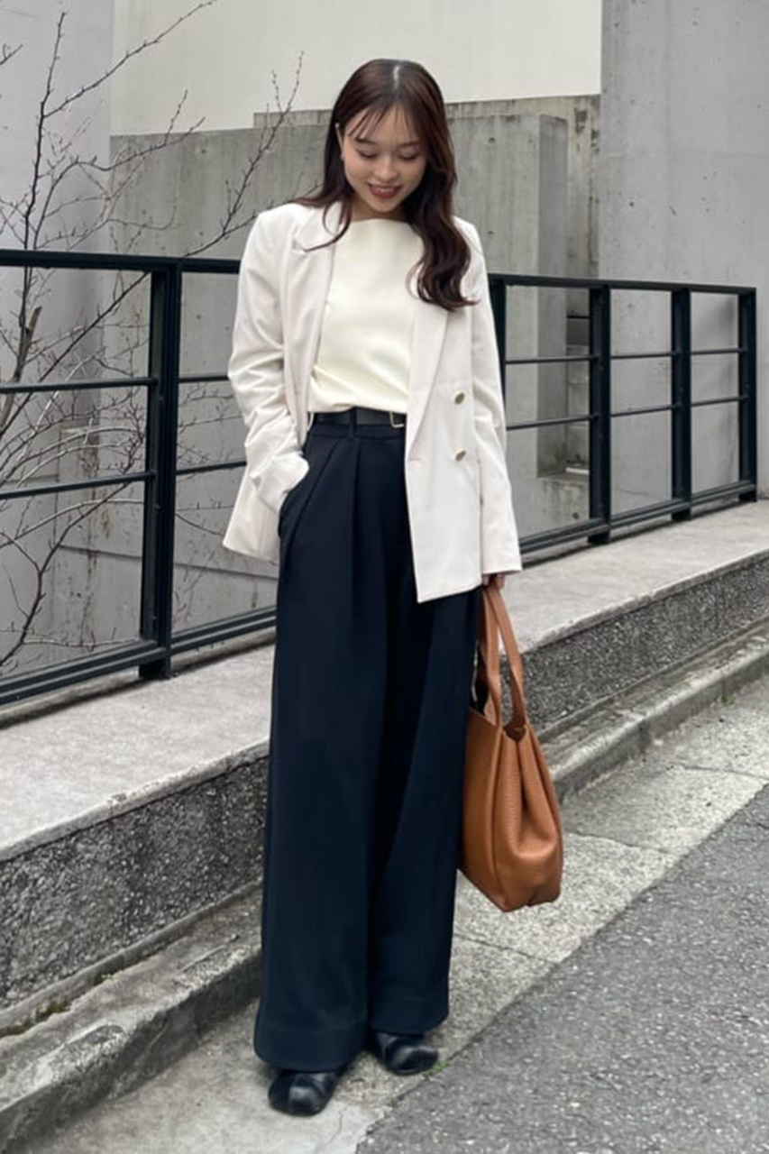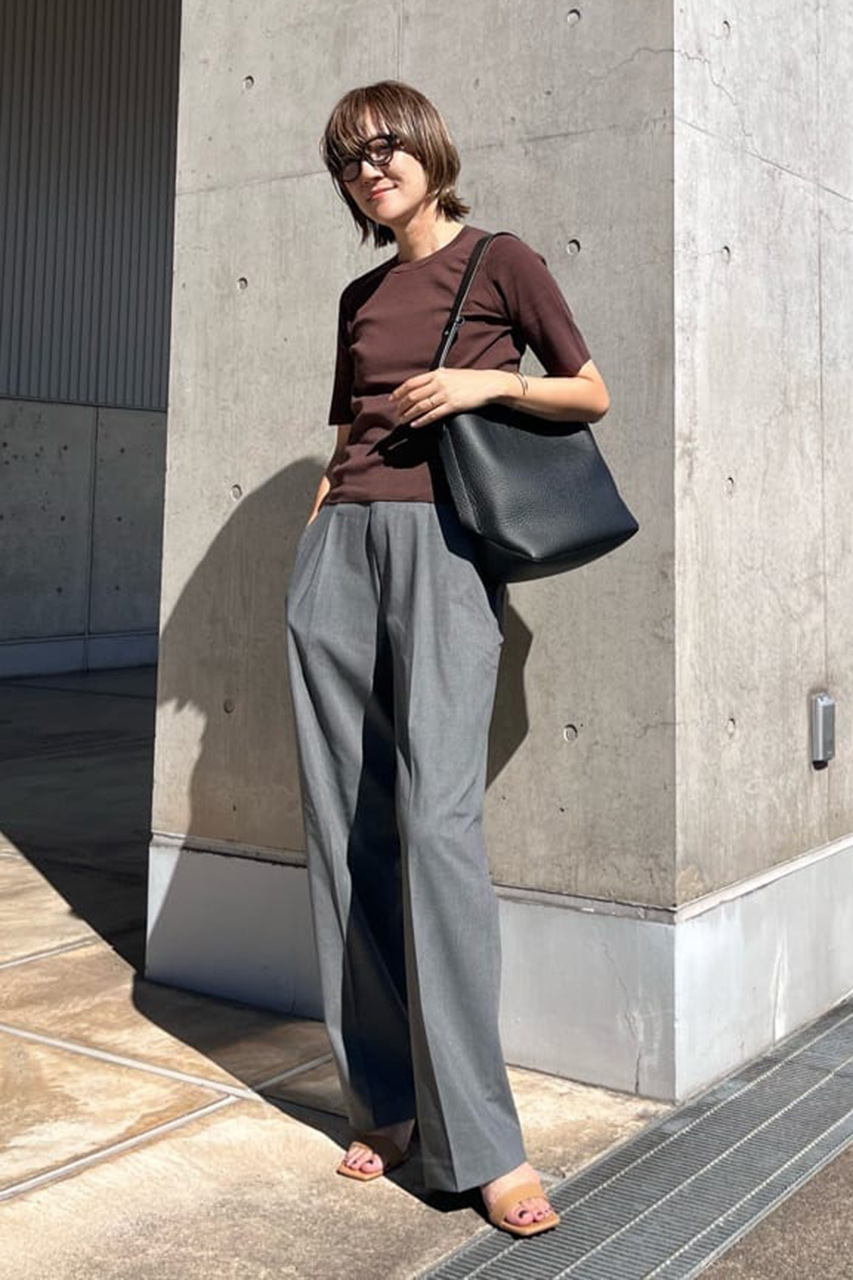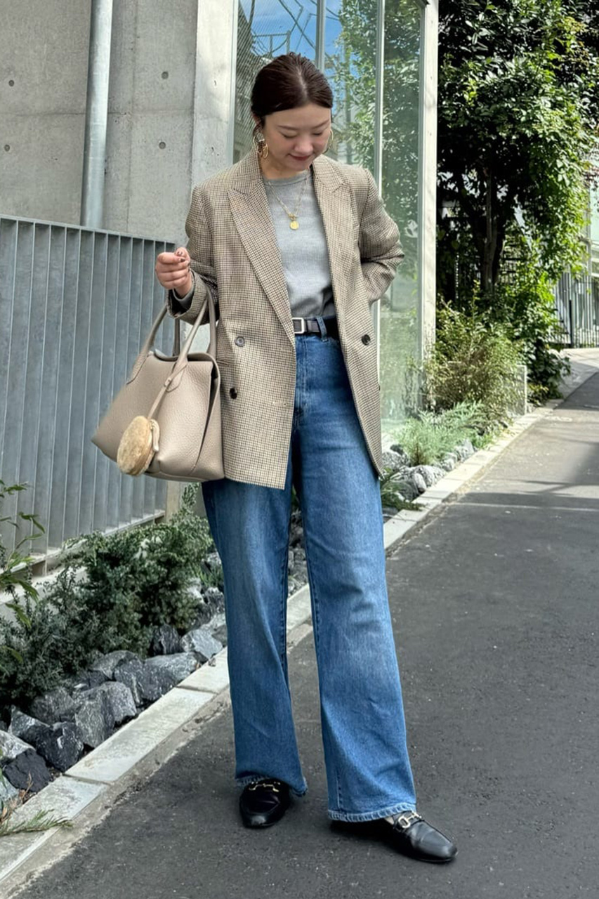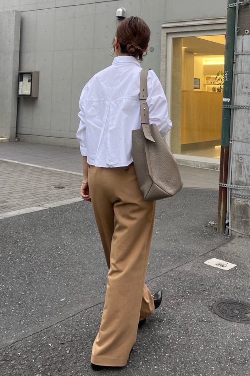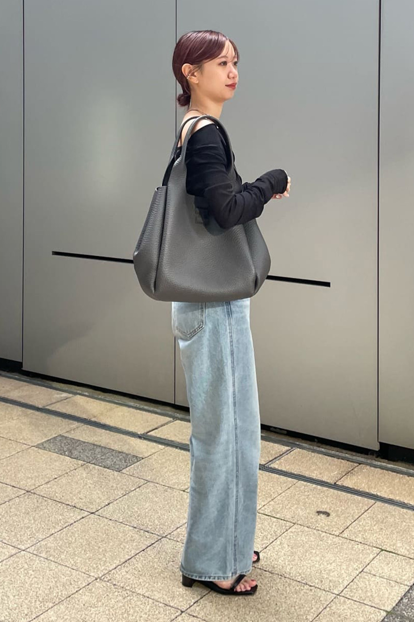 ”ジャスト”サイズではなく、あえて”大きめ”バッグを合わせるのが、大人の余裕を演出してくれるスタイリングとトレンドにも。