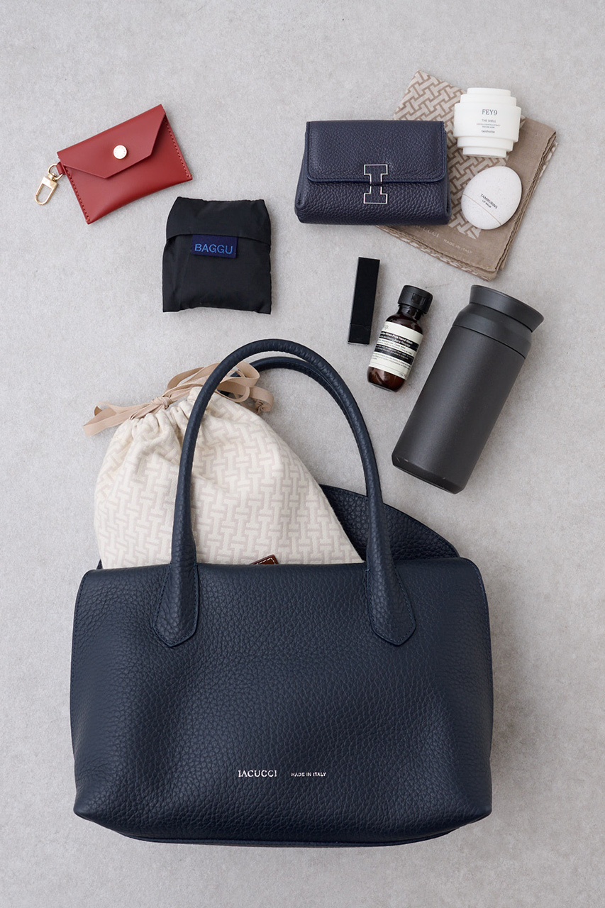 ある程度お荷物を入れても、縦長シルエットなので、ボリューム感が出すぎずスマートな印象に。