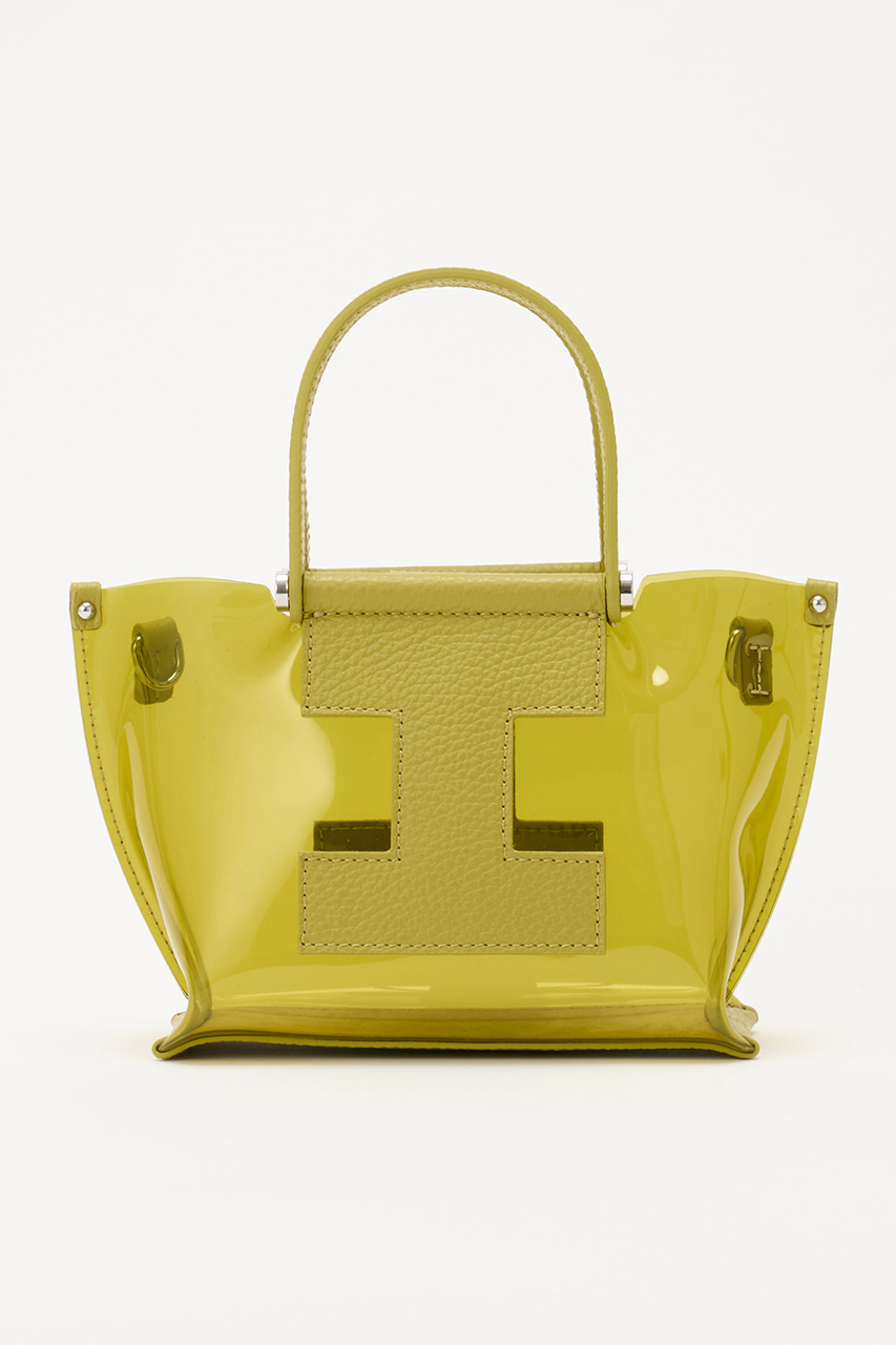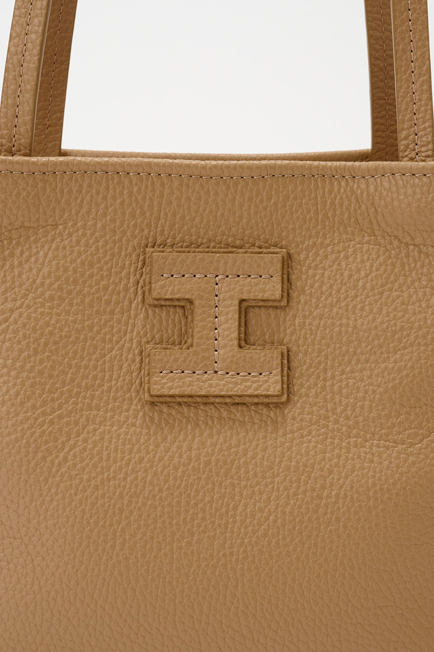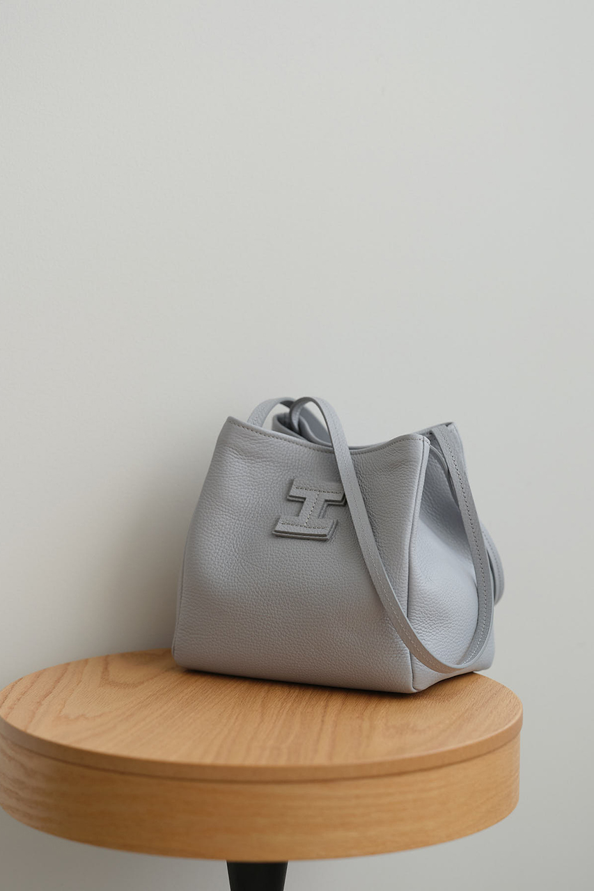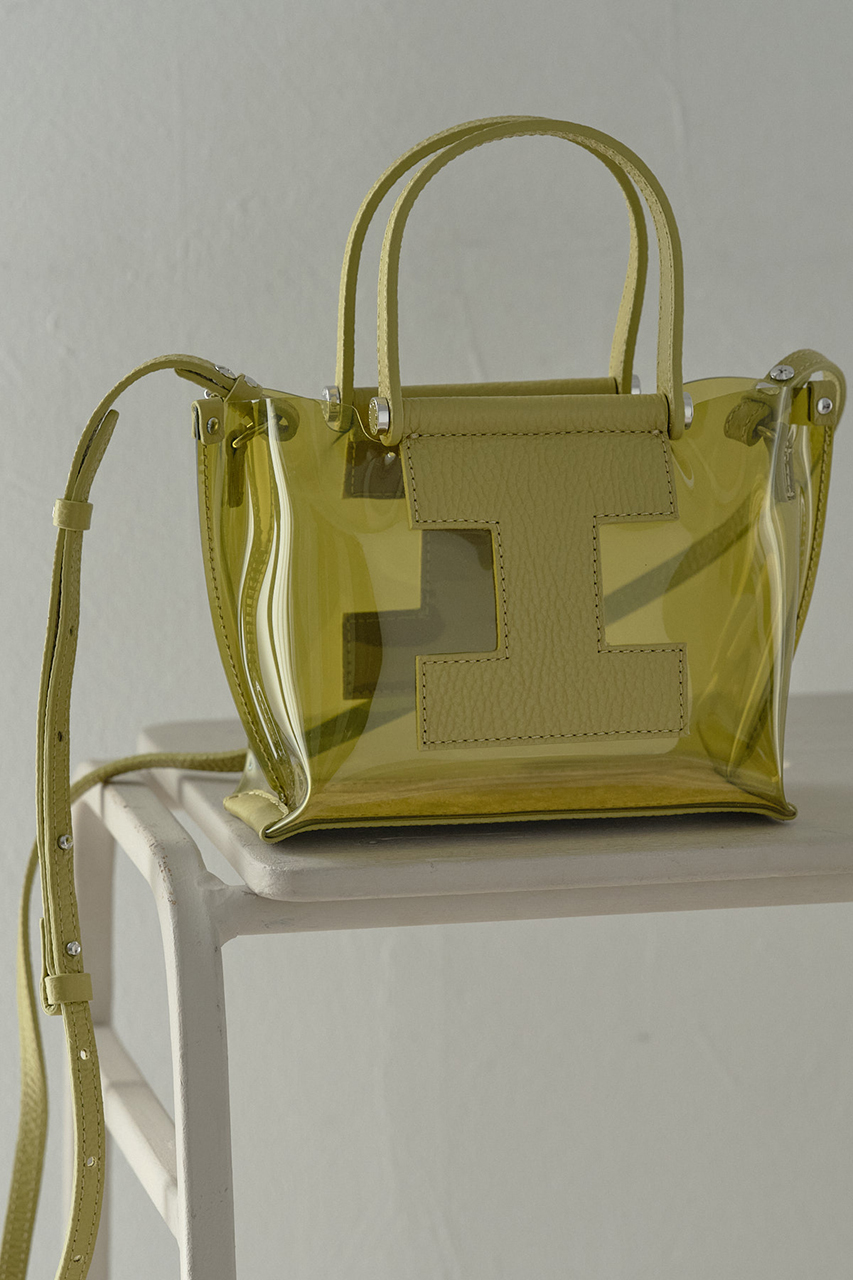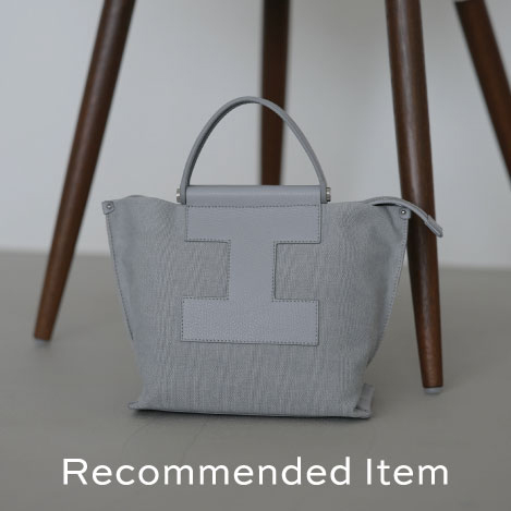 肩掛け可能なハンドルながら、立体的なスクエアフォルムでシンプルになりすぎず、さりげないアクセントとしてスタイリングに組み込んでほしいアイテム。フロントの「I」ロゴはボディと同トーンで、シーン問わずに使いやすいバッグです。