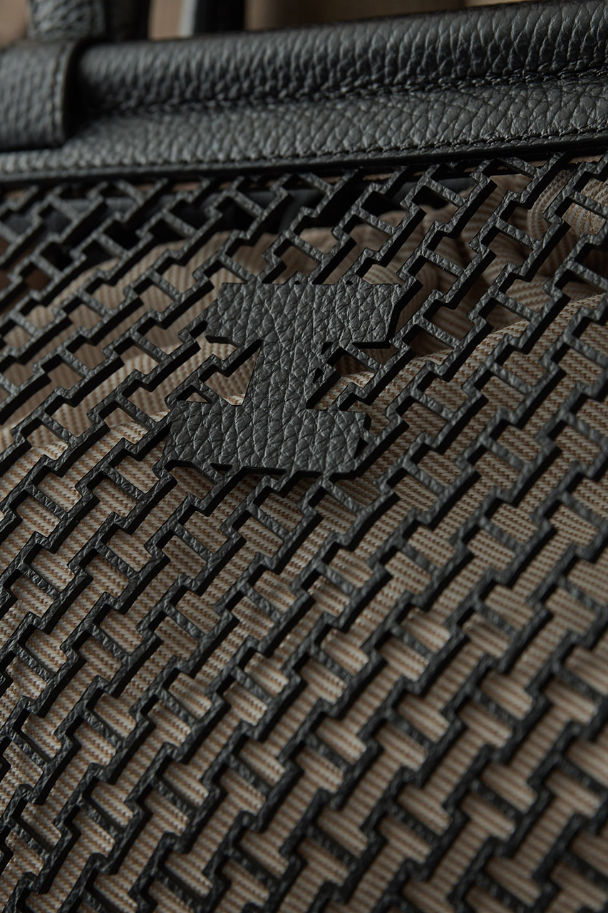 モノグラムデザインのレザーカットを施したシボレザーを使用したブラック。