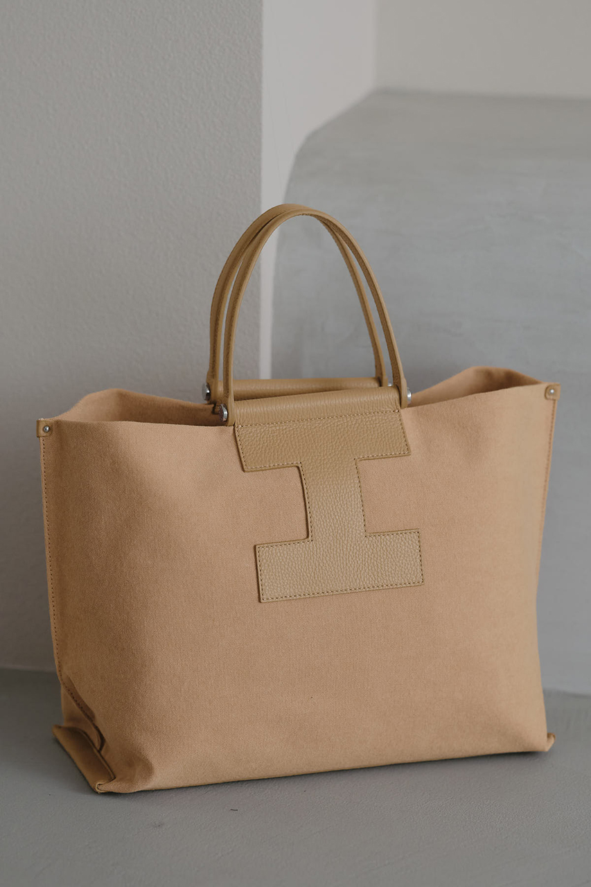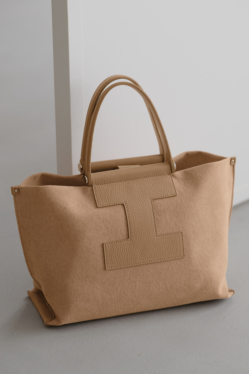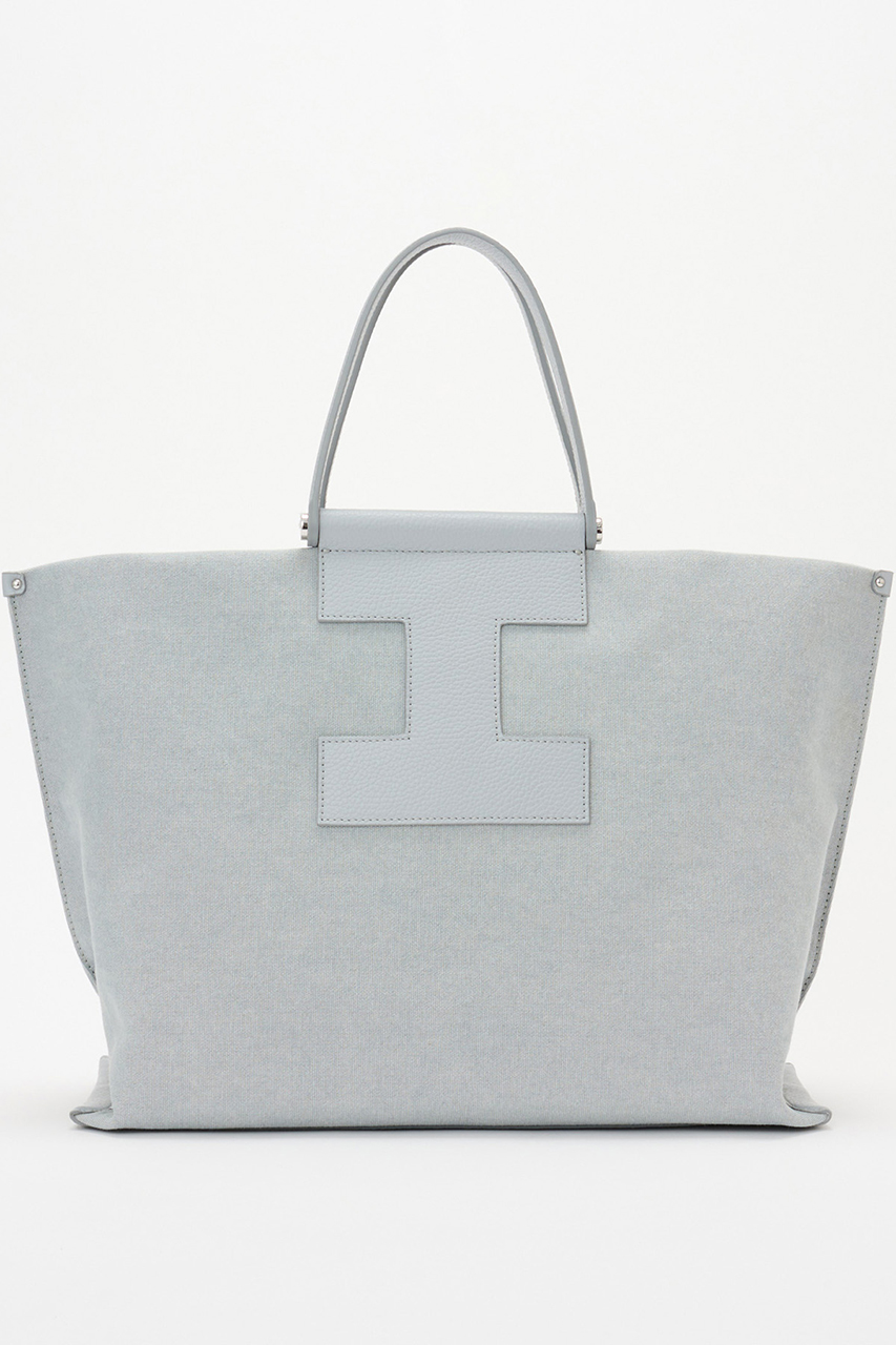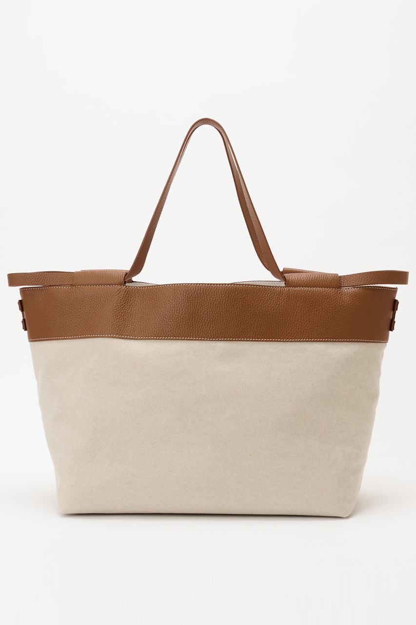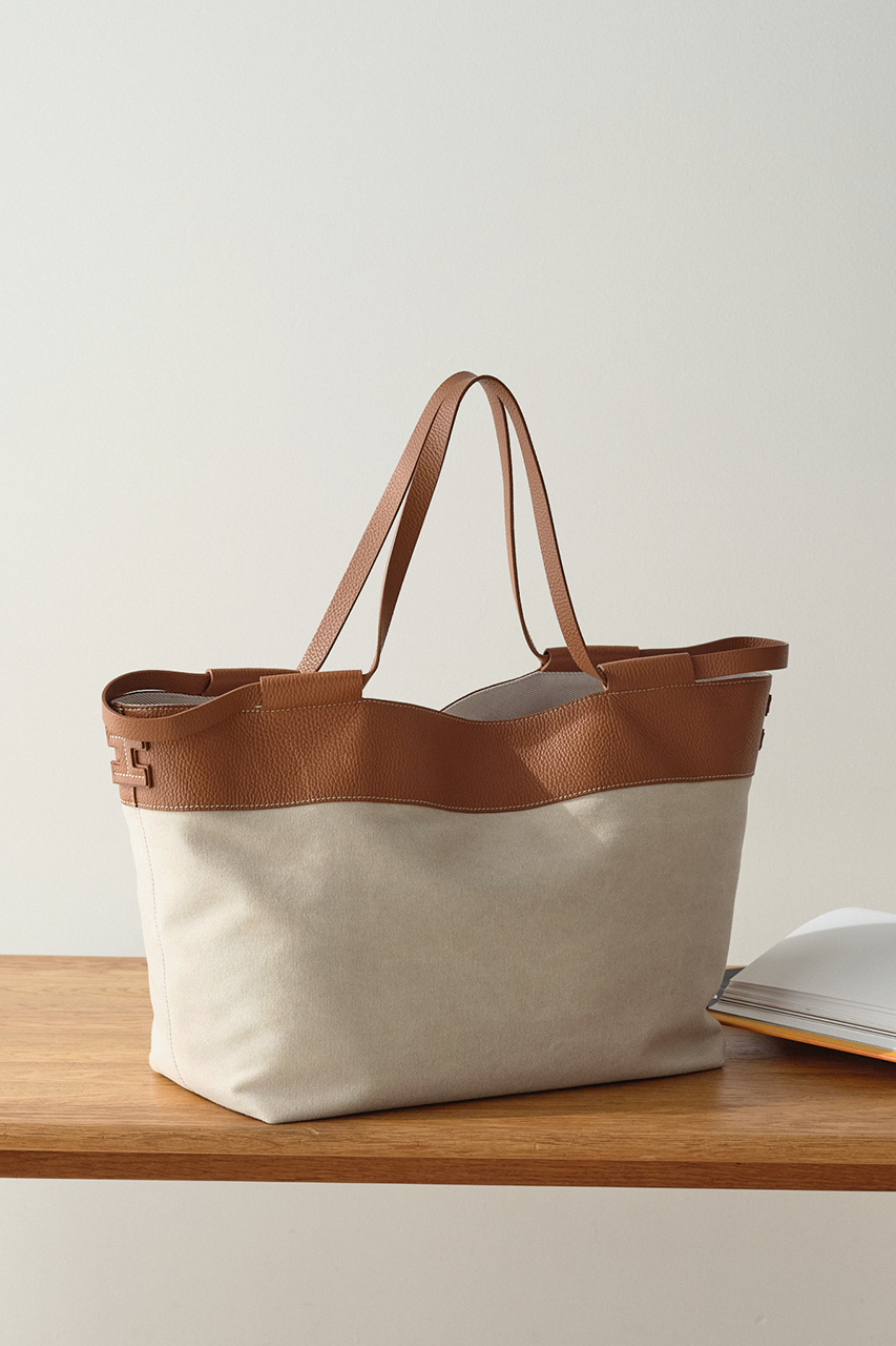 エレガントなシルエットで、ツートンの配色のキャンバス素材が特徴的なトート。