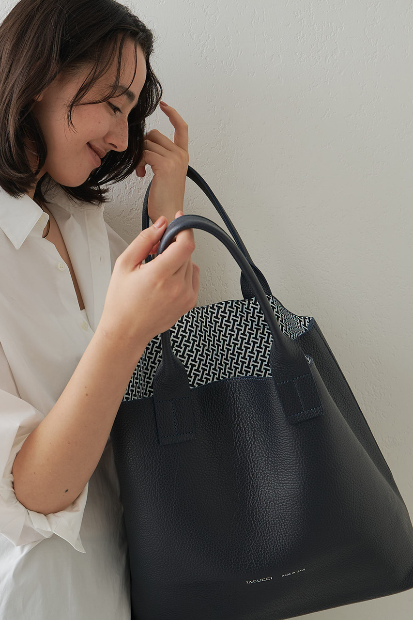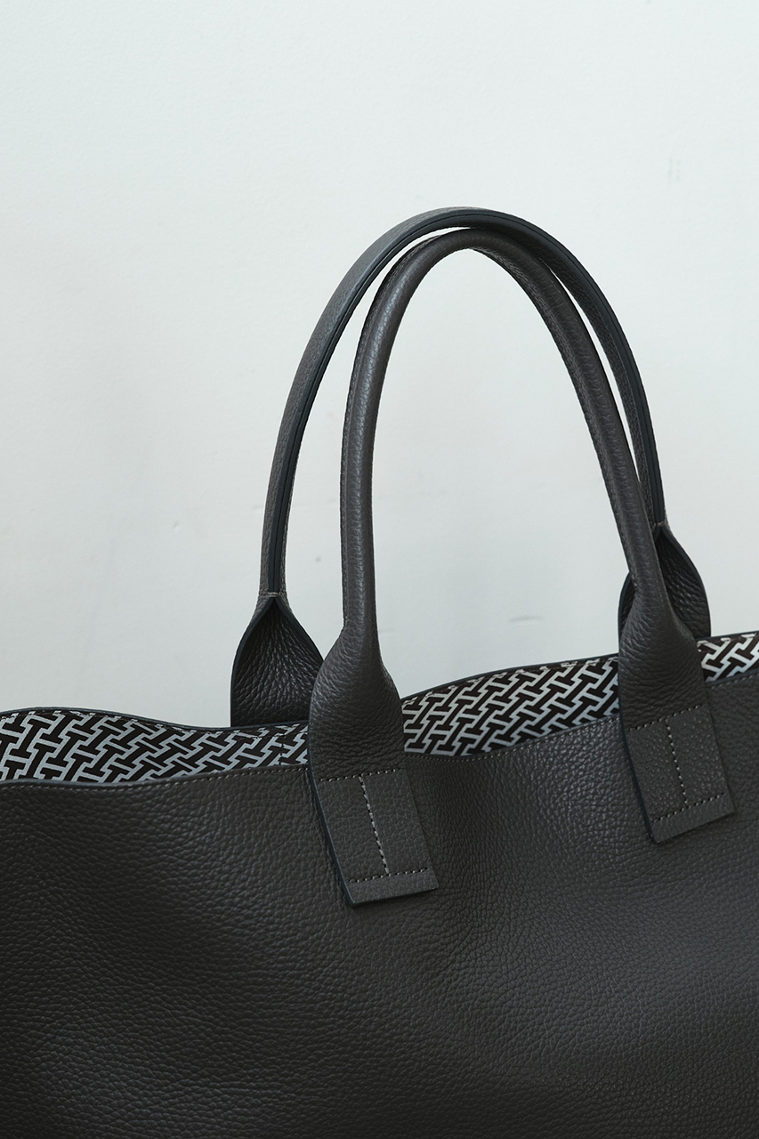 シンプルなデザインながら、内側のモノグラムプリントがさりげない華やかさを演出してくれるトート。