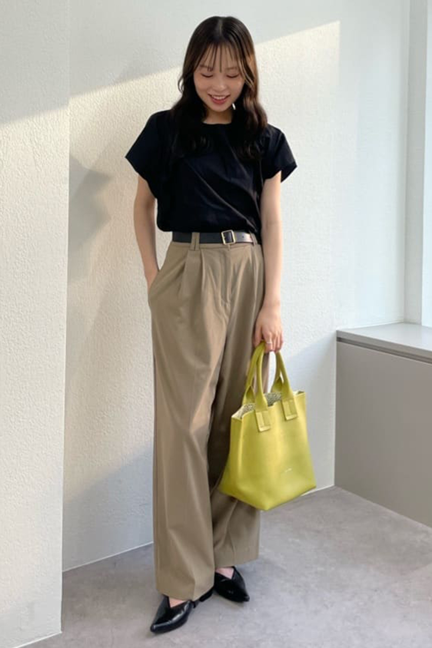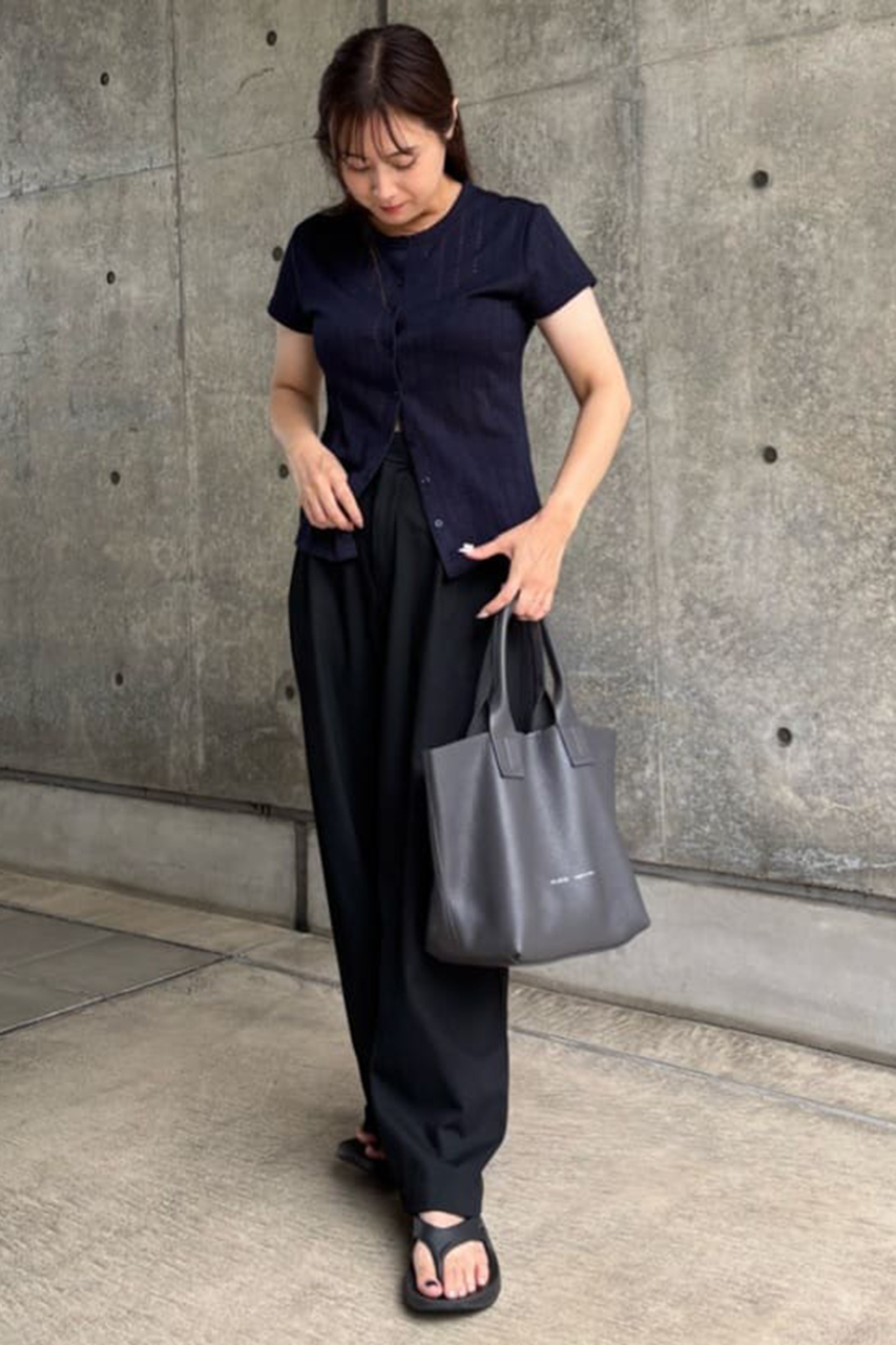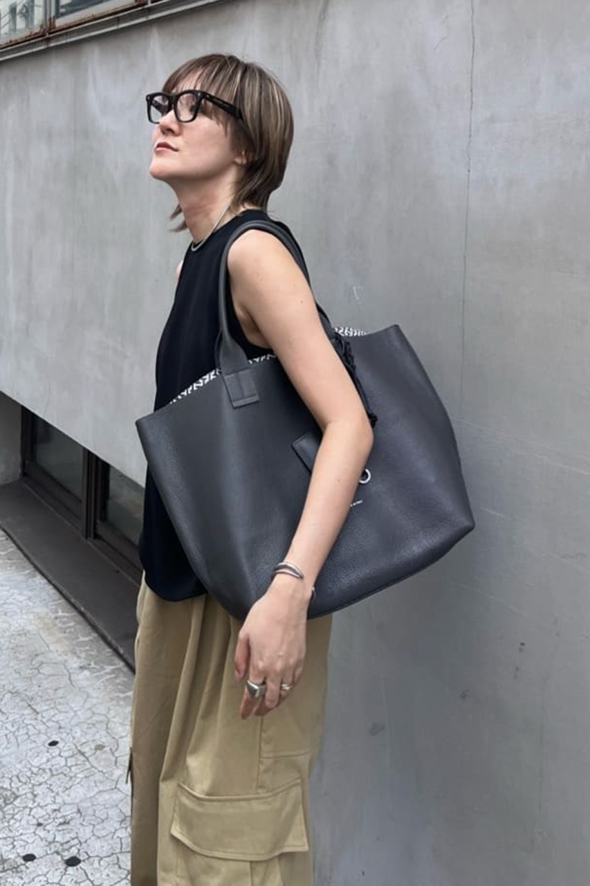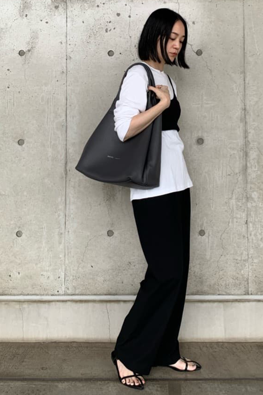 大きめバッグがトレンドライクな印象にクラスアップしてくれる。あえて荷物を少なめにくたっとさせて持つのも抜け感のあるスタイリング作りにはぴったり。
