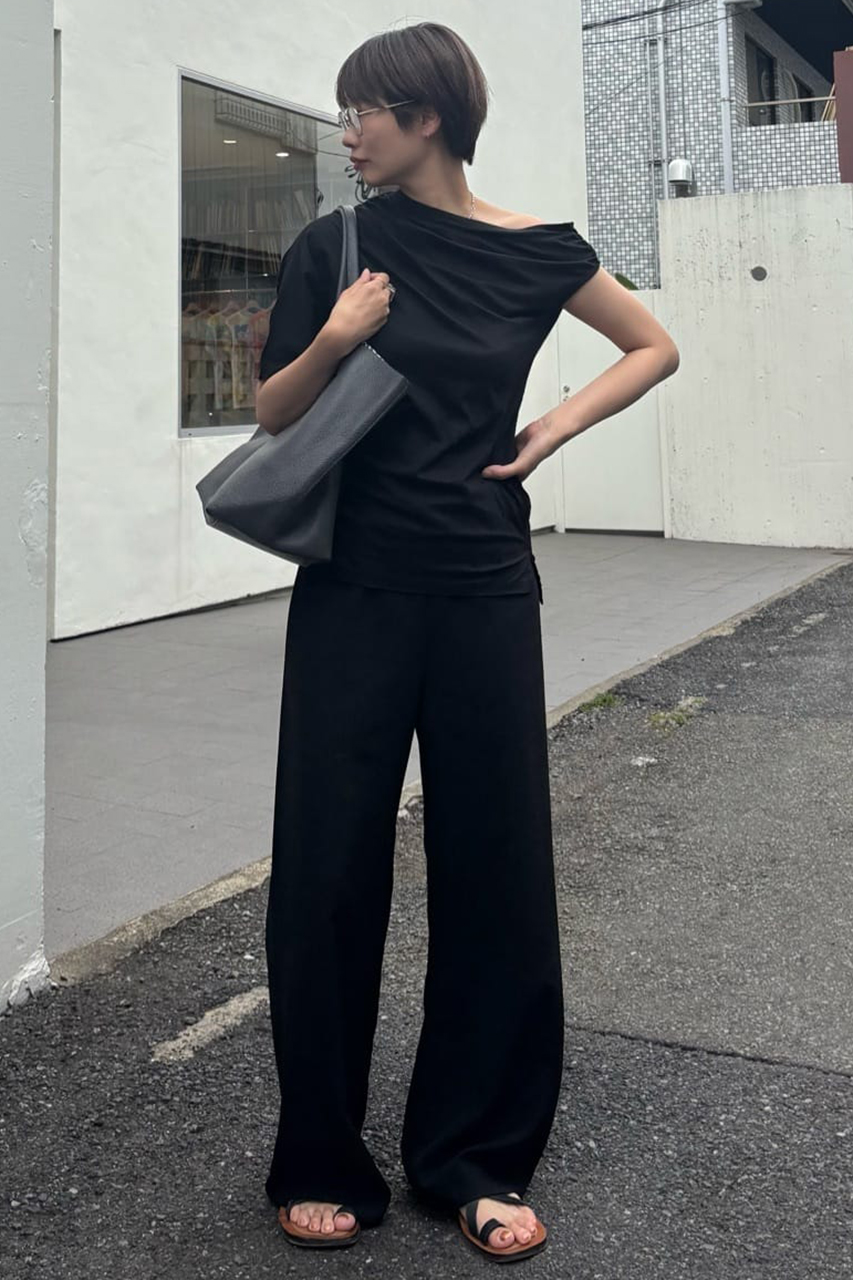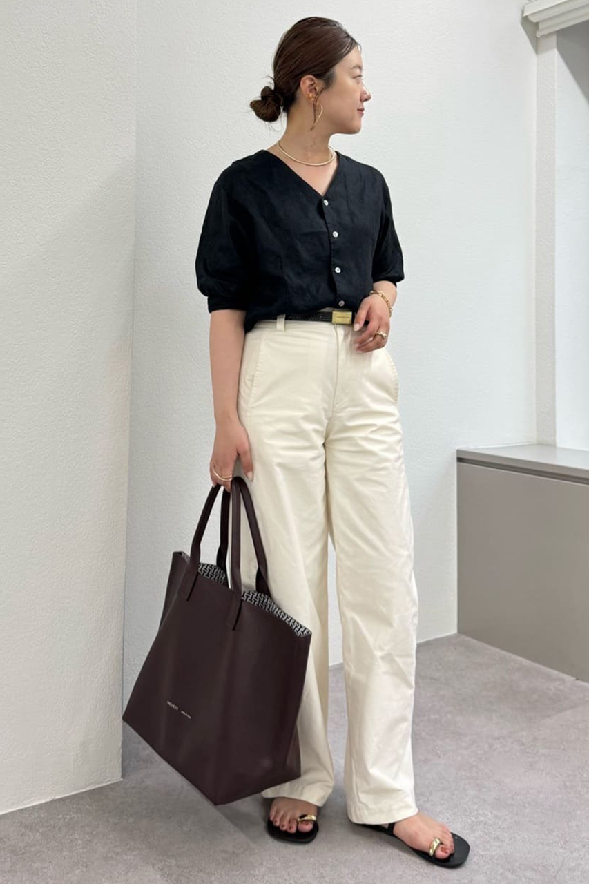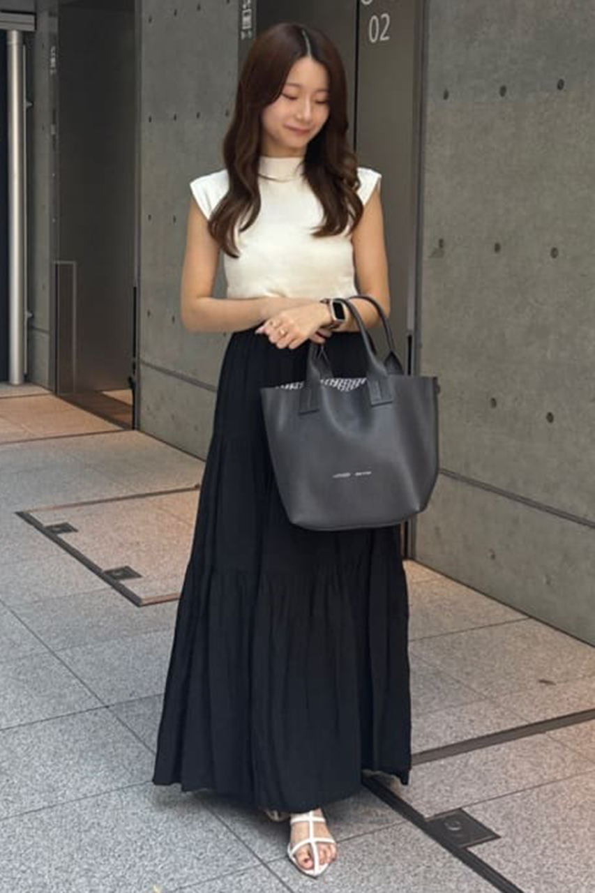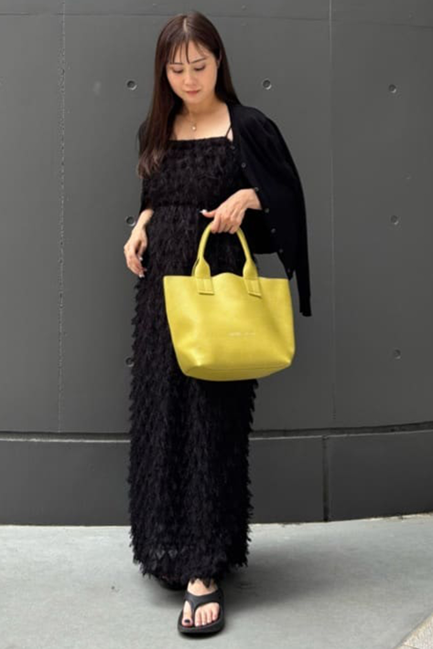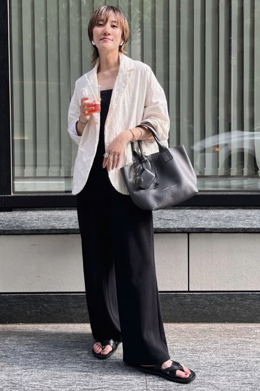 大きめバッグがトレンドライクな印象にクラスアップしてくれる。あえて荷物を少なめにくたっとさせて持つのも抜け感のあるスタイリング作りにはぴったり。