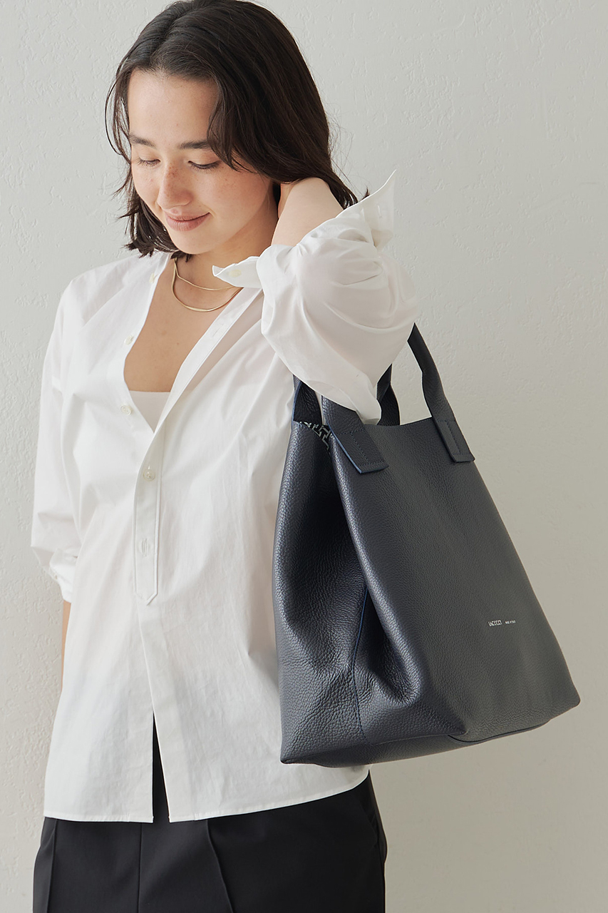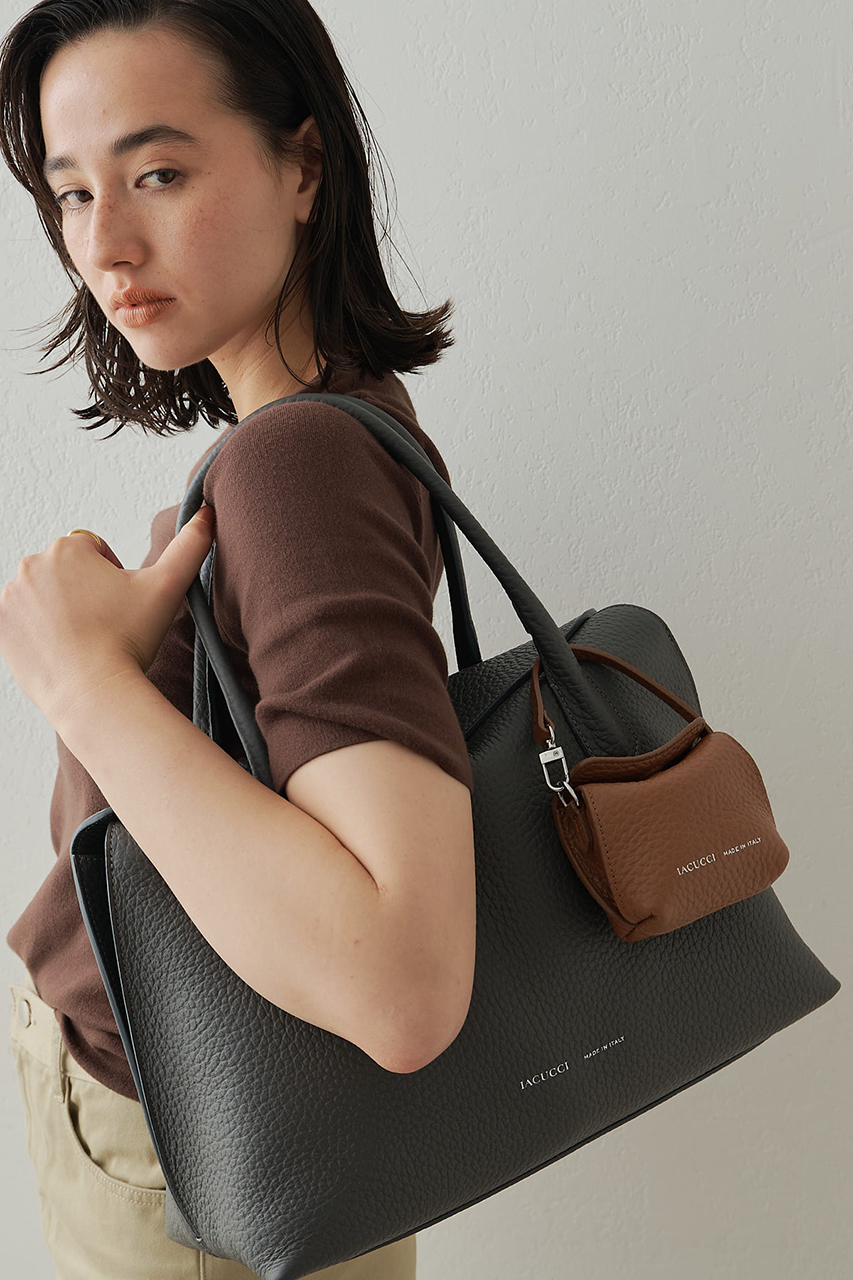 シーンやスタイリングに寄り添ってくれるデザインのハンドバッグ。ボディのレザーに上質な”ALCE"を使用していることで、カジュアルなスタイリングは程よく女性らしさが、キレイめなスタイリングには芯のある印象がプラスされるなど、自身をより引き立ててくれるアイテムとして活躍してくれます。シーズンカラーに加え、待望の「ブラック」「トープ」の2カラーが再登場。