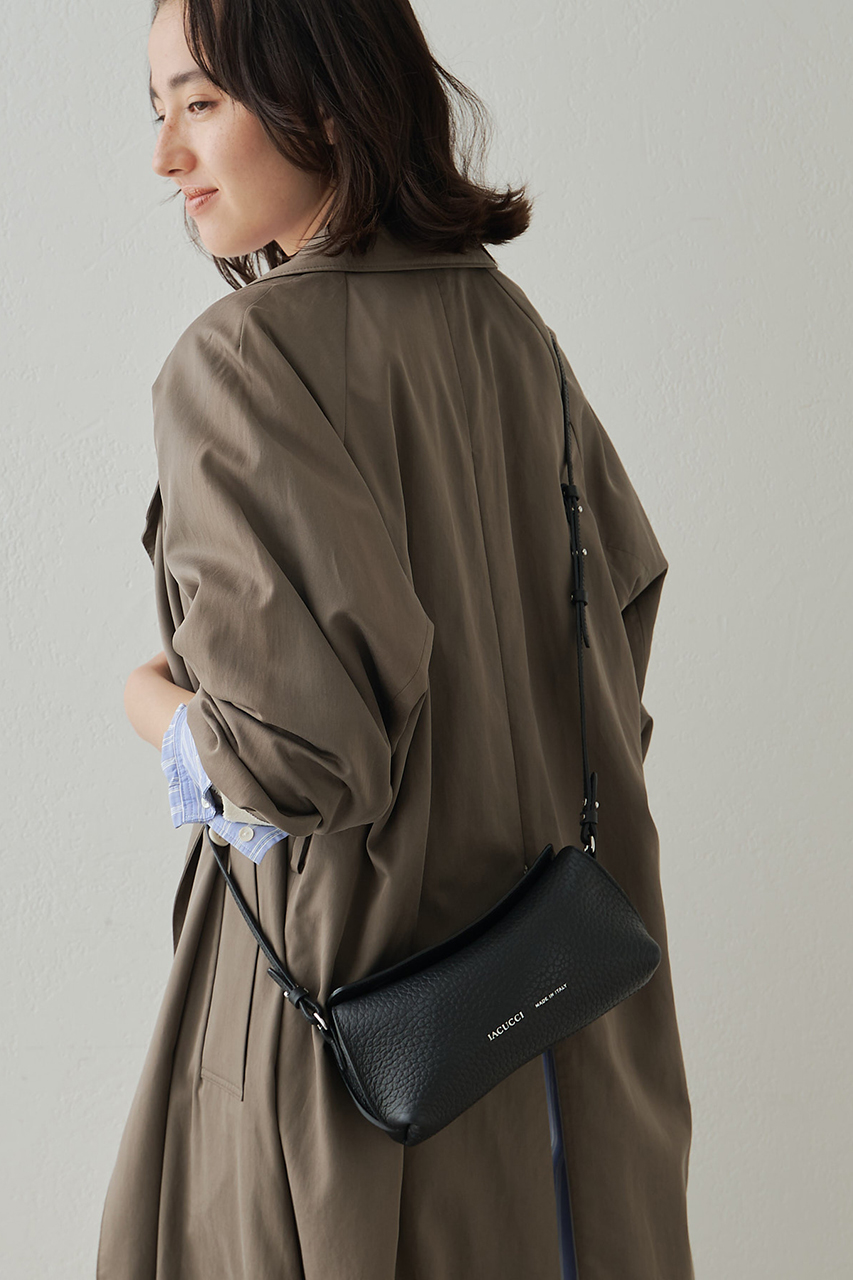 ブラックは色の中でも、”合わせやすさ”、”使いやすさ”は群をぬいているのではないでしょうか。ただそんな色だからこそ、周りとちょっと違いをつけて個性を忘れたくない。「色に利便性があるのなら、シルエットや素材にはこだわって、いつもと”違う”を選んでも活躍してくれるのでは。」