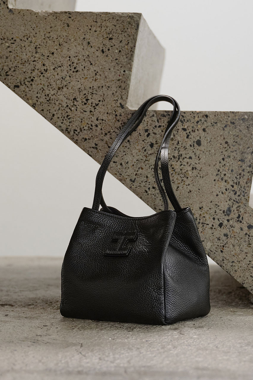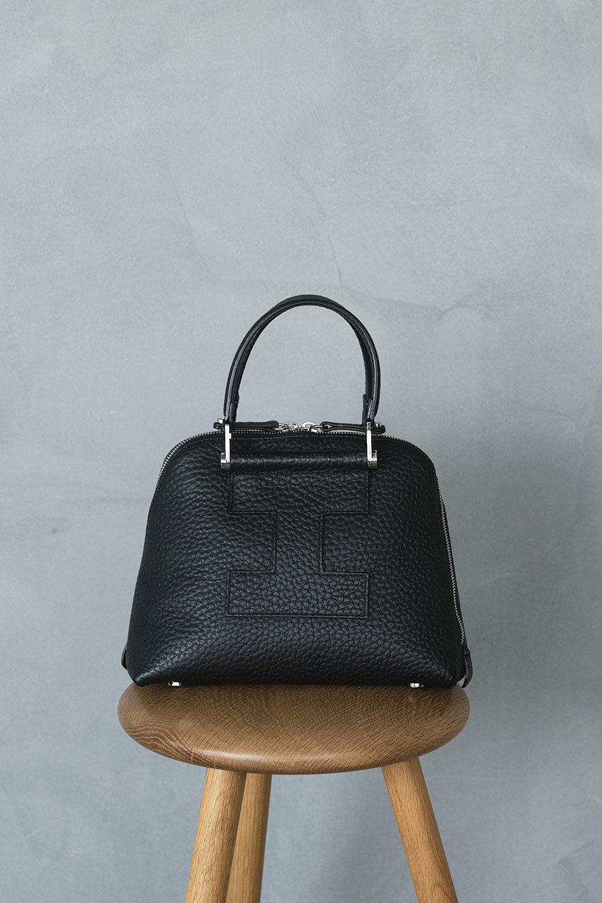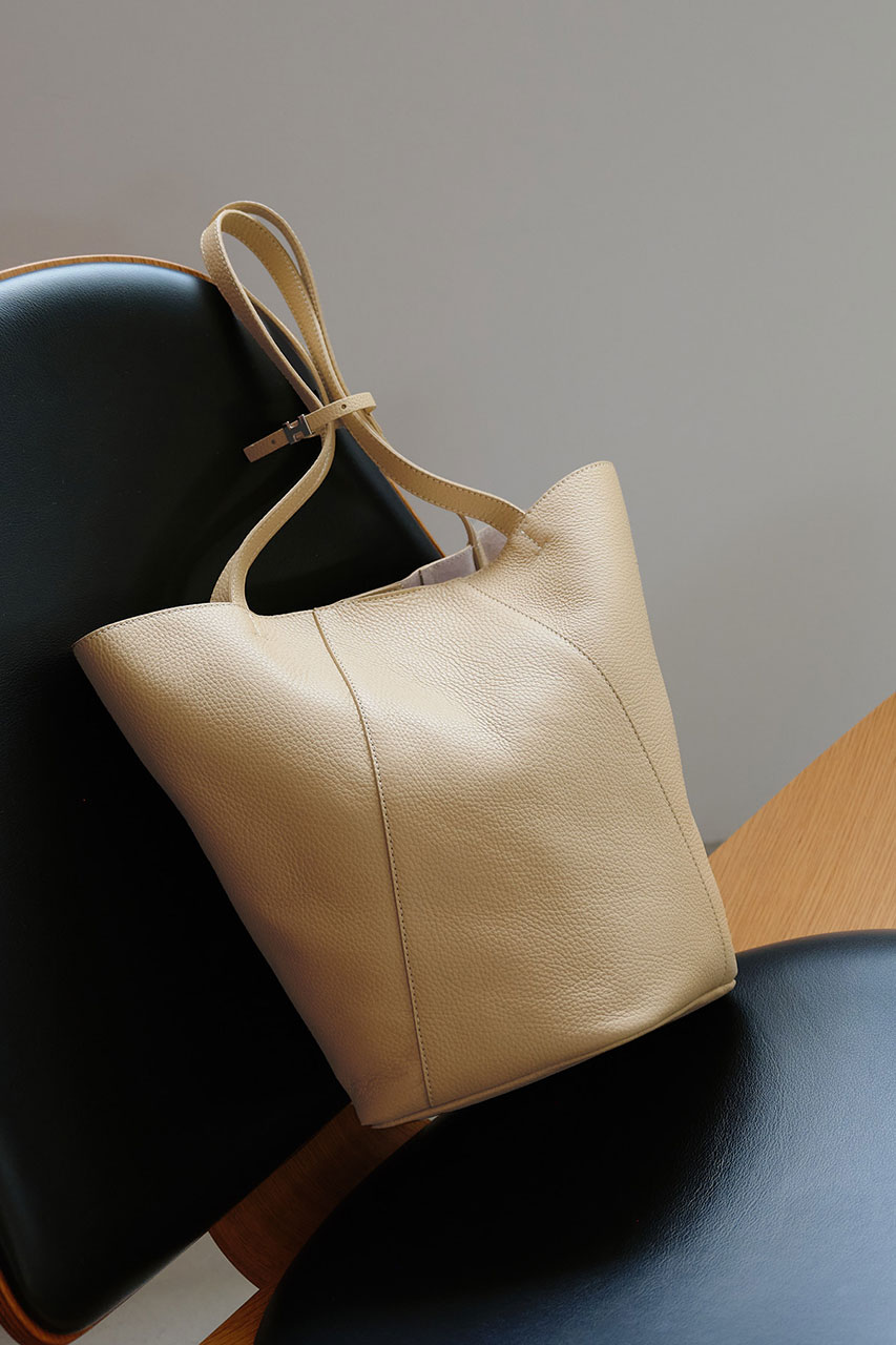レザーのシボ感はしっかりと感じつつも、比較的すっきりとした印象の”CERVO"。カジュアルさとエレガントさのバランスが取れた素材で、デイリーに使いやすい。夏はナイロン素材派のスタッフも、軽い印象のCERVOからレザーアイテムを取り入れ始めたい様子。