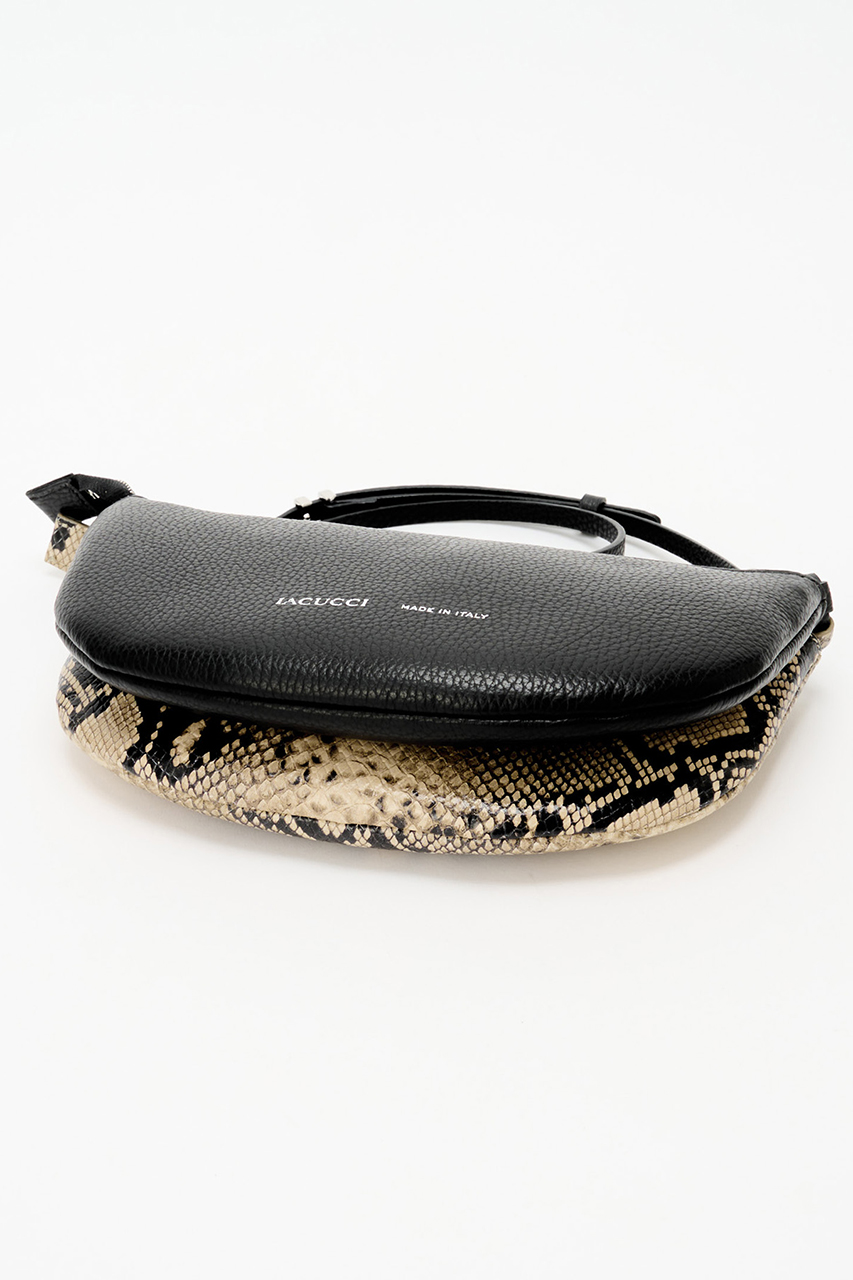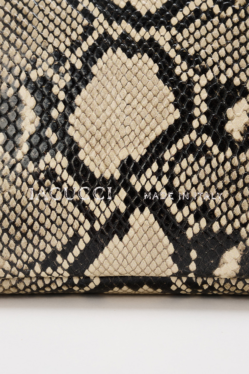 またシボレザーを表に持った時の、背面からさりげなく除くパイソン柄のレザーも魅力。