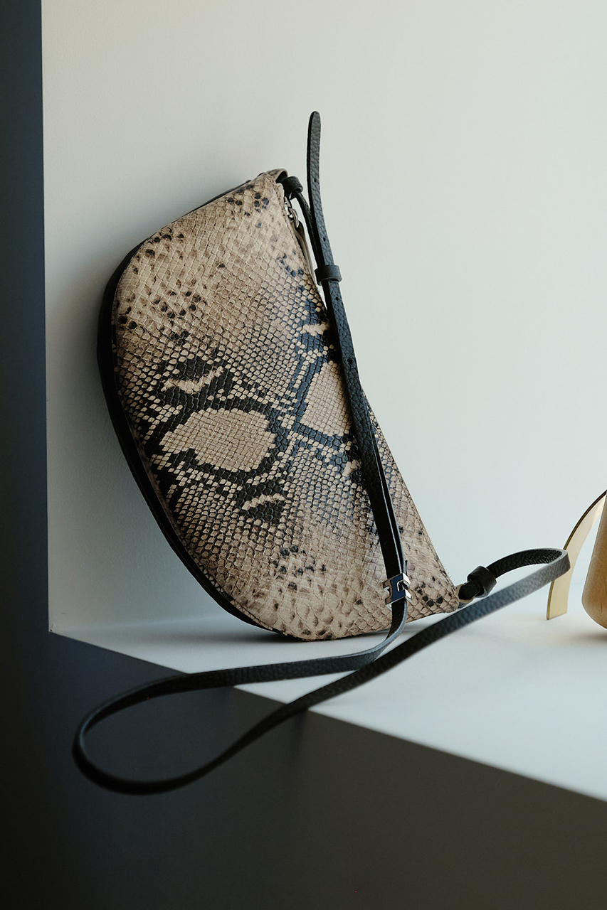 ふっくらとした上質なレザーのALCEは、洗練されよりスマートな印象に。そしてパイソンプリントを施した型押しレザー仕様のデザインは、シンプルなスタイリングにも映え、「どこかいつもと違う自分になれそう」。そんな新鮮さもある印象へと導いてくれます。