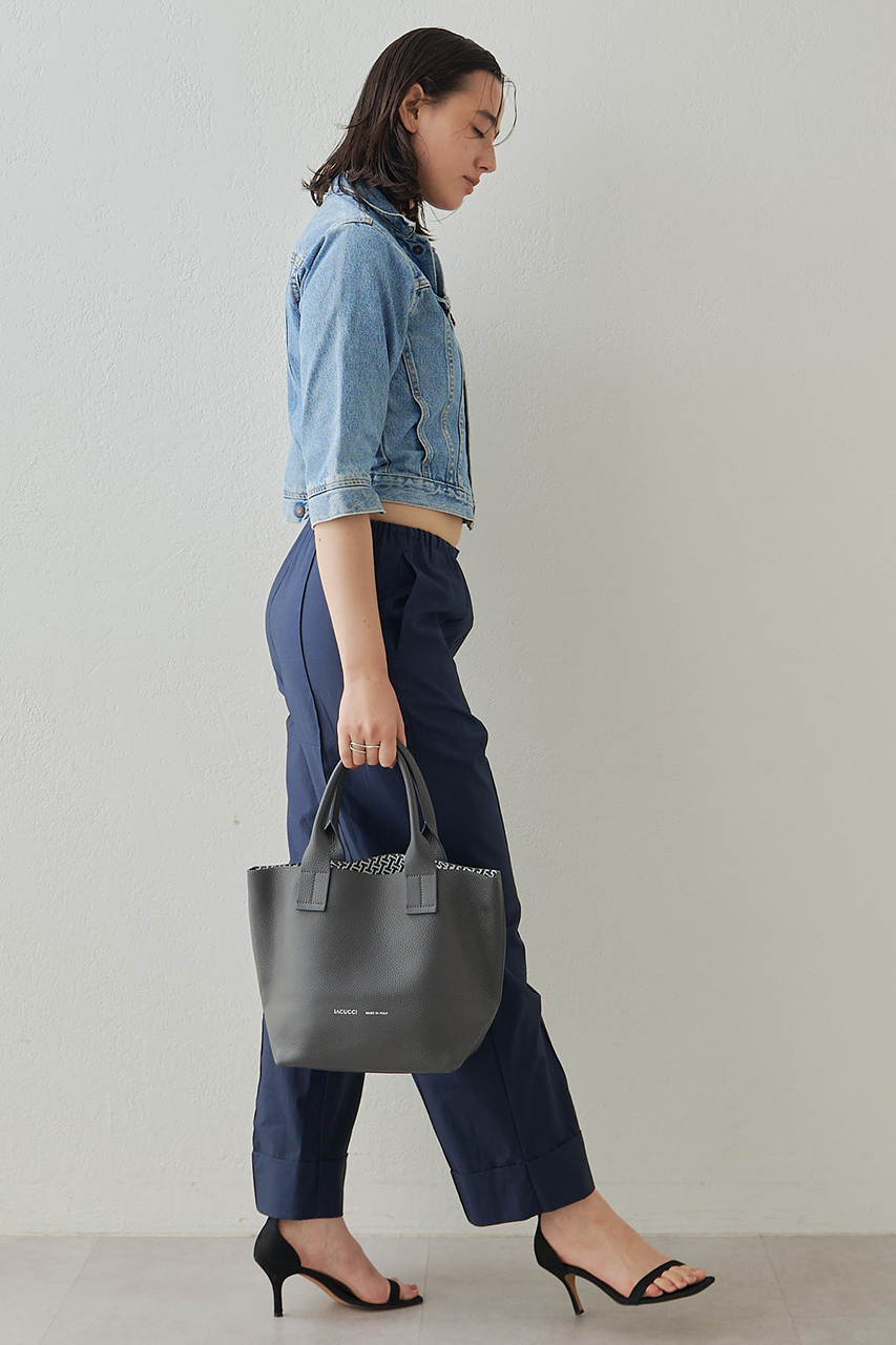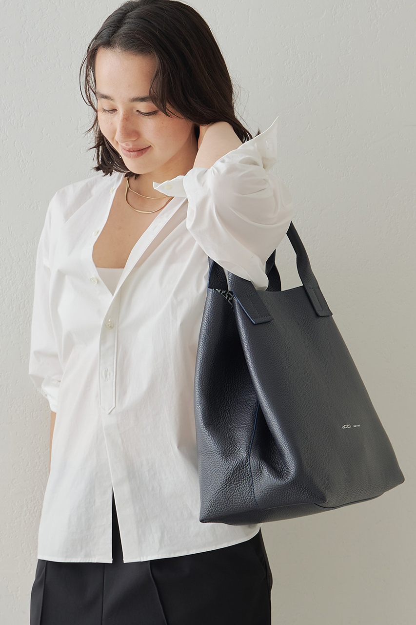 さらに、サイドの隠しマグネットを留めて広げれば、ワイドシルエットのトートにも。