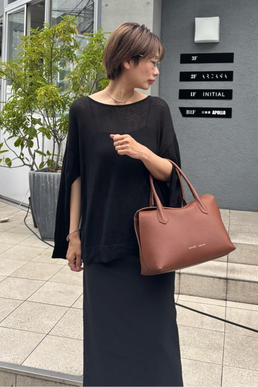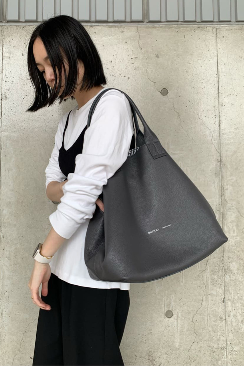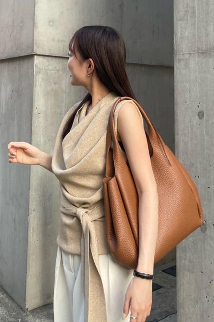 登場以来、人気が途切れない名品バッグ。SNSでも話題のこのアイテムは、トートバッグでありながら、上質なレザーの風合いと美しいフォルムが際立ち、女性らしい上品さを演出してくれます。