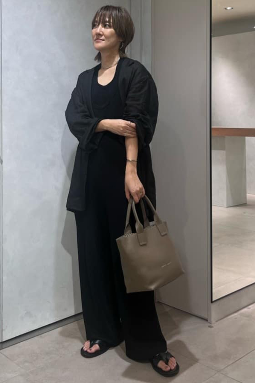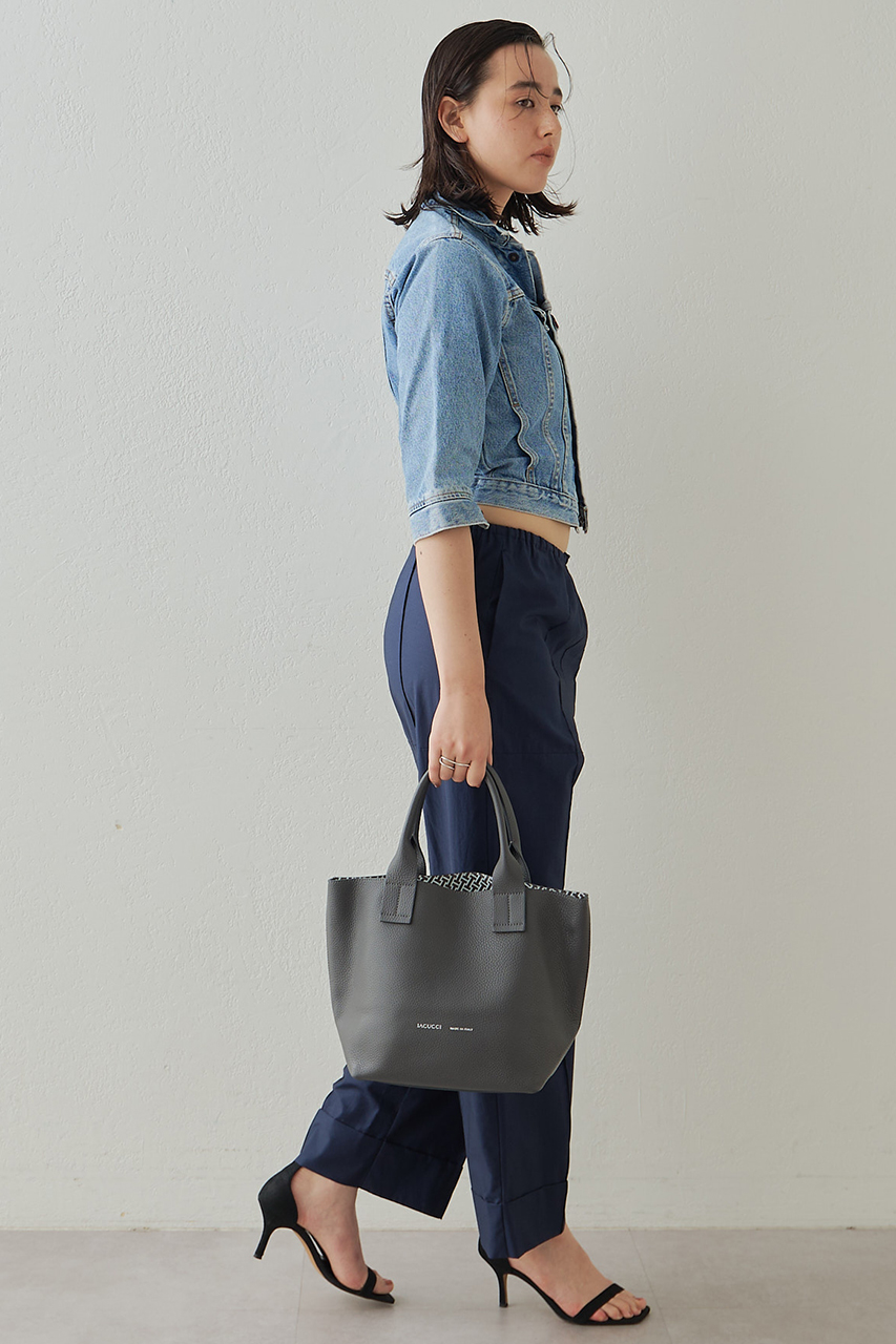 A4サイズが余裕で入るサイズで、デイリーユースはもちろんのこと、1泊程度のご旅行にも持てるトート。また、荷物が少なくなった時には、サイドのスナップでフォルムチェンジして、雰囲気を変えるのも。