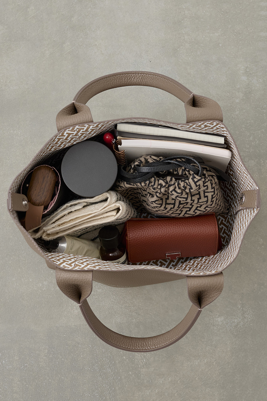 一枚革仕様でバッグ本体が軽く、荷物を入れてもストレスフリー。「バッグはコンパクトサイズが好きだけど、重くなるのは避けたい。」そんな方にもおすすめのトートバッグです。間口が大きく開くので、さっと荷物を取り出したいときにも便利。