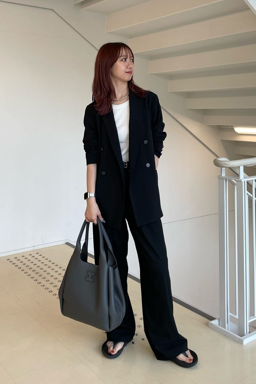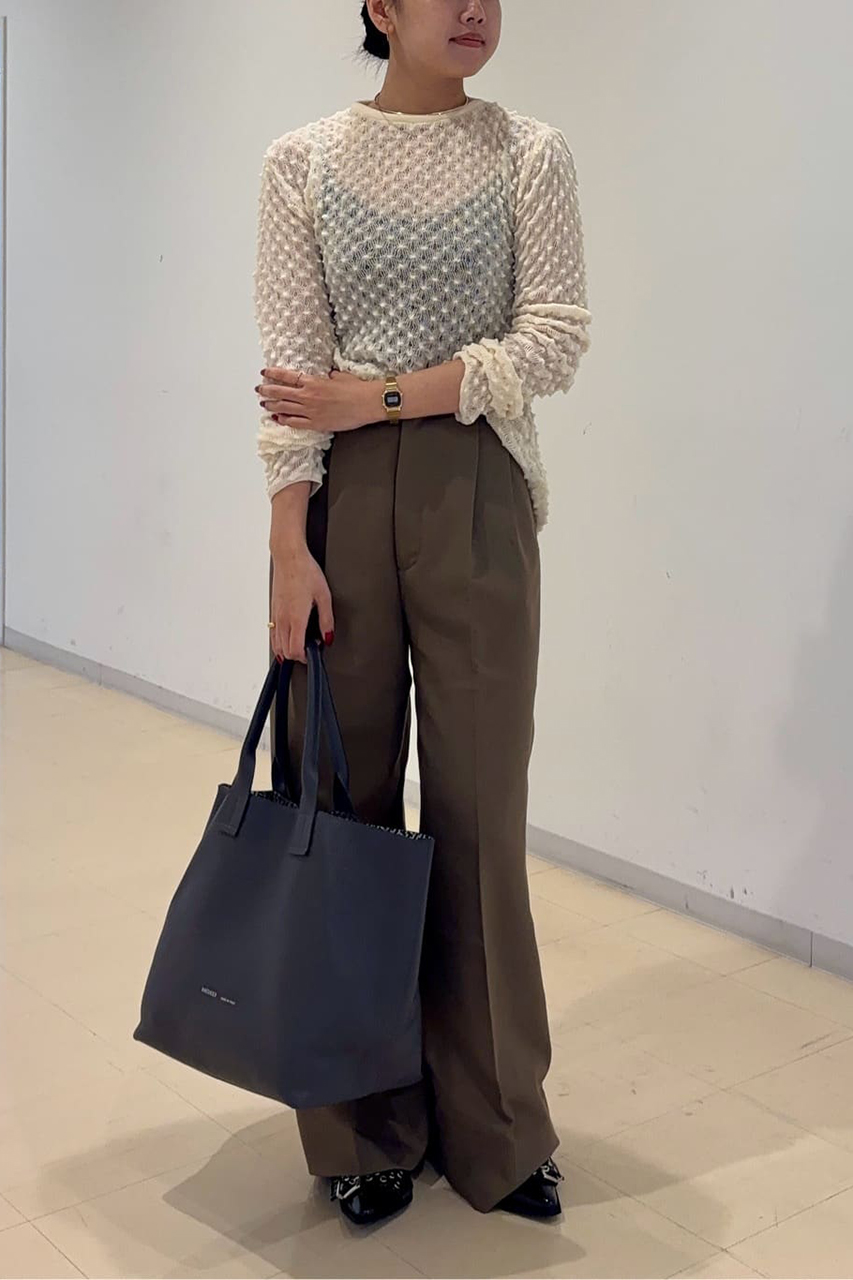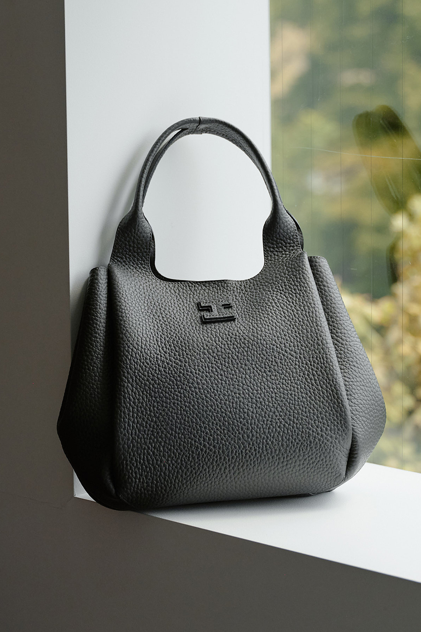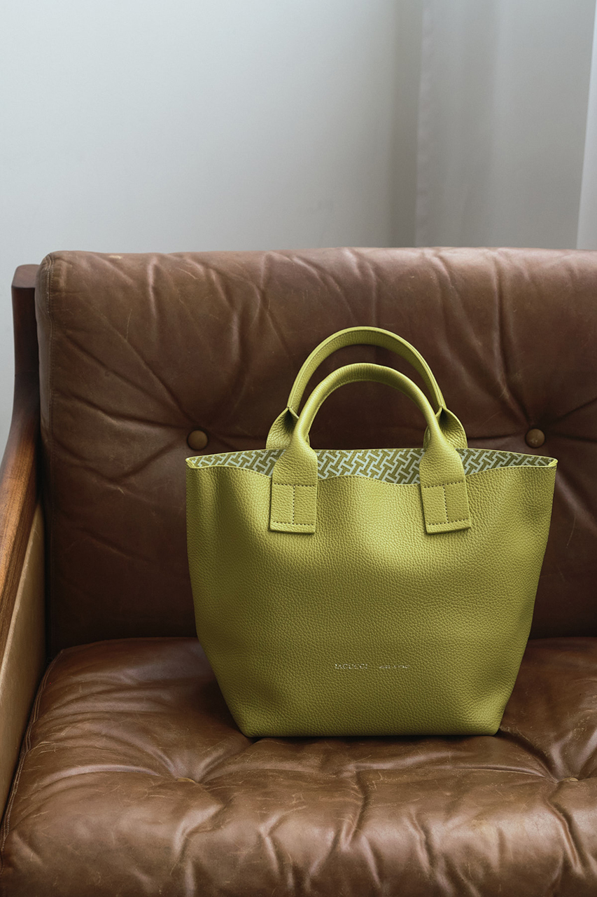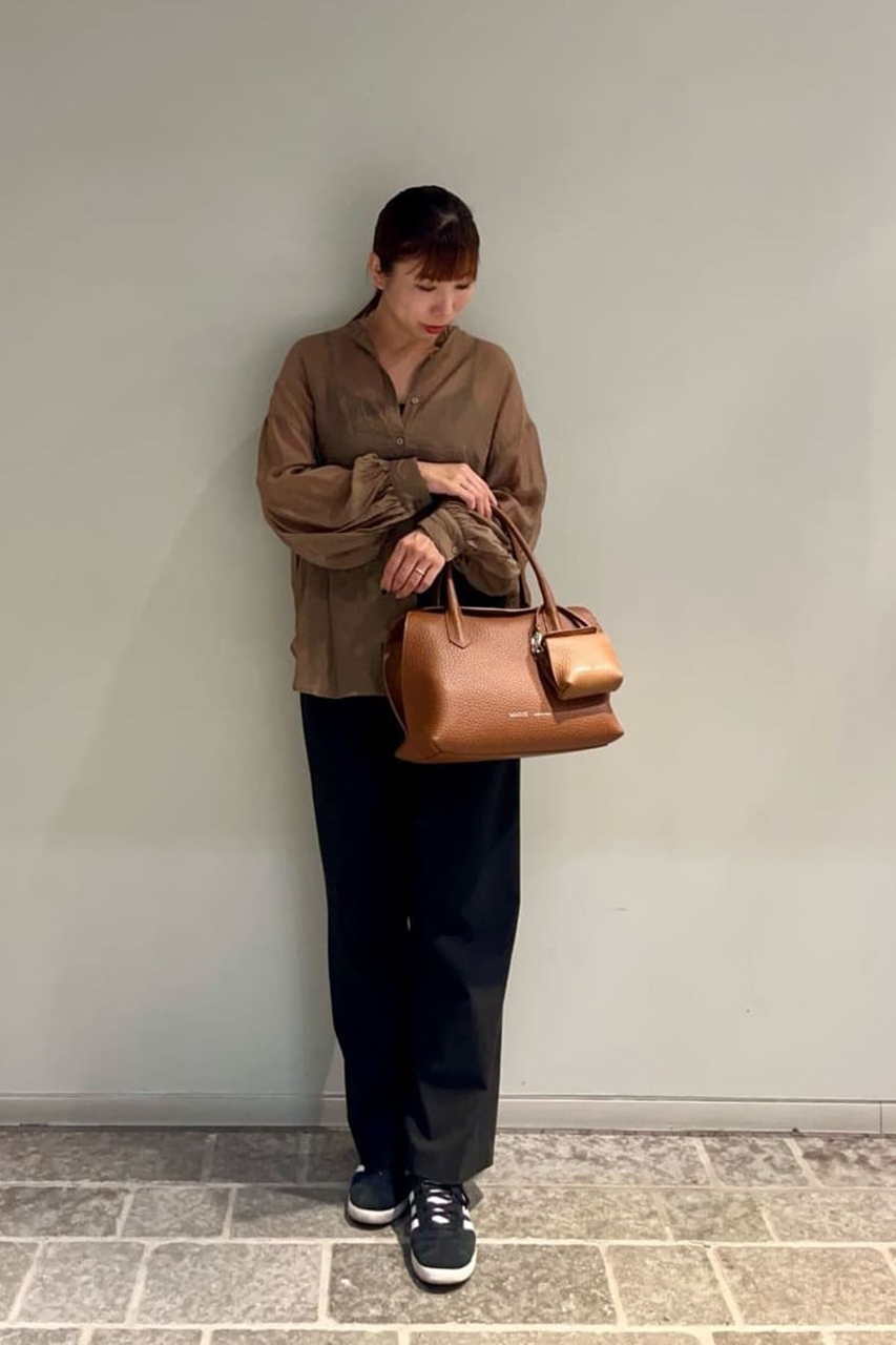 柔らかで上質なレザーと、上品なラウンドフォルムが目を惹くトートバッグ。通勤に使っているスタッフも多く見受けられます。肩掛けしやすく、容量も申し分なしのサイズ感がリアルに使いやすい理由なのかもしれない。