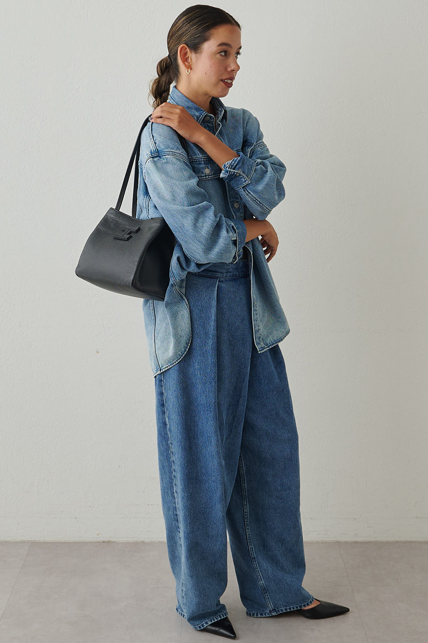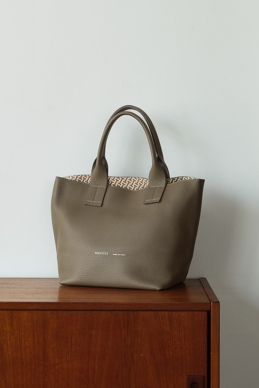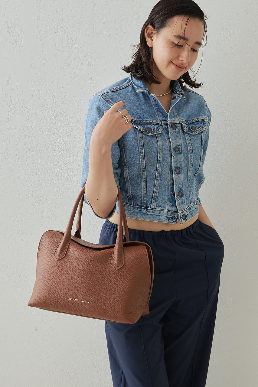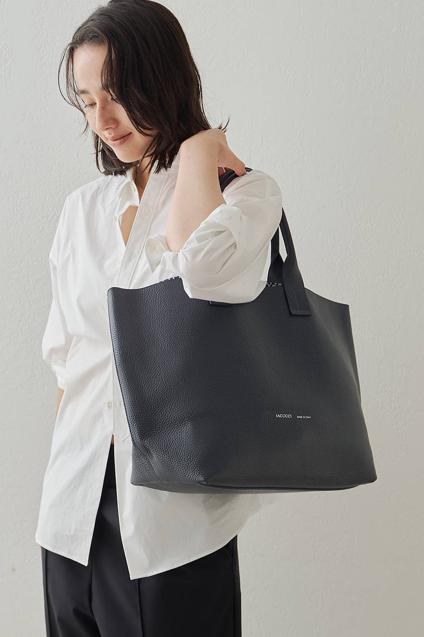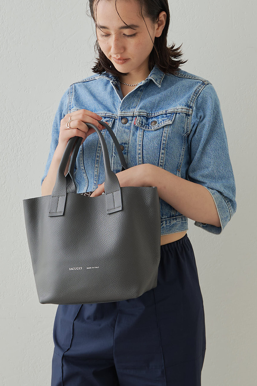 長めのハンドルが特徴的なトートバッグ。そして、デザイン性だけじゃない機能性も兼ね備えたスクエアシルエット。4か所にマグネットが配され、しっかりと間口が止まっているので、プライベートもしっかり守られる安全面も抜群。また底が広いことで、貴重品+αも収納できる大容量さも嬉しいポイントです。BORGO同様に、再販を重ねているバッグです。