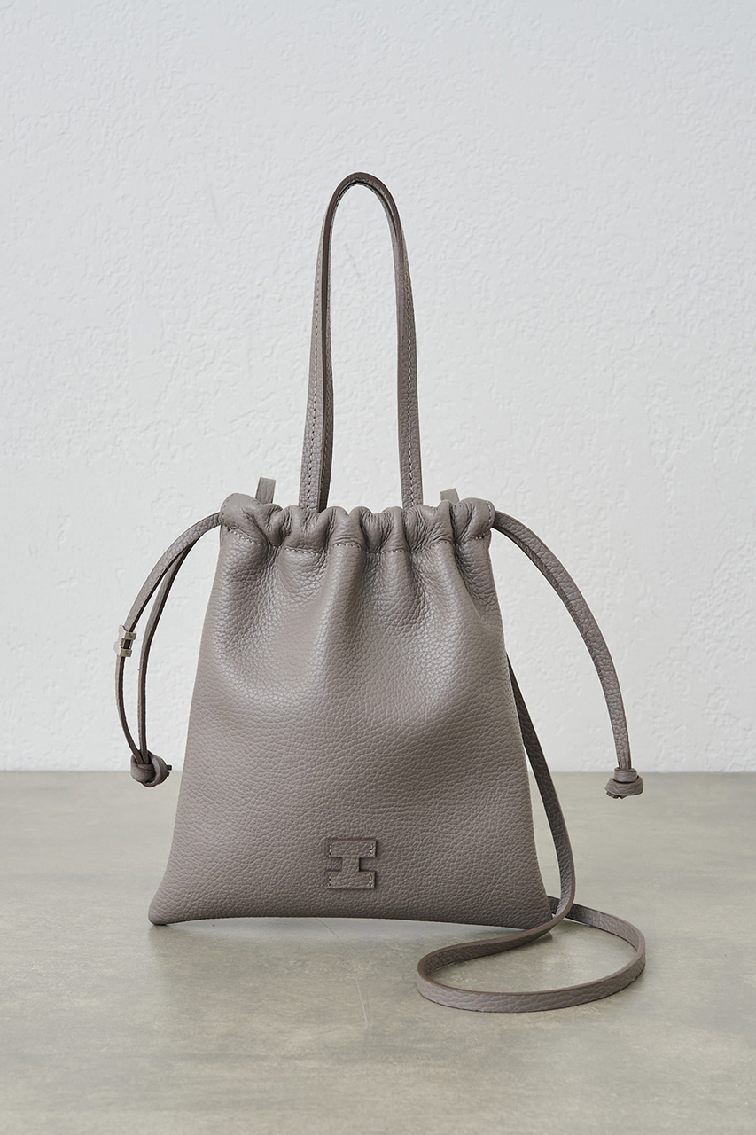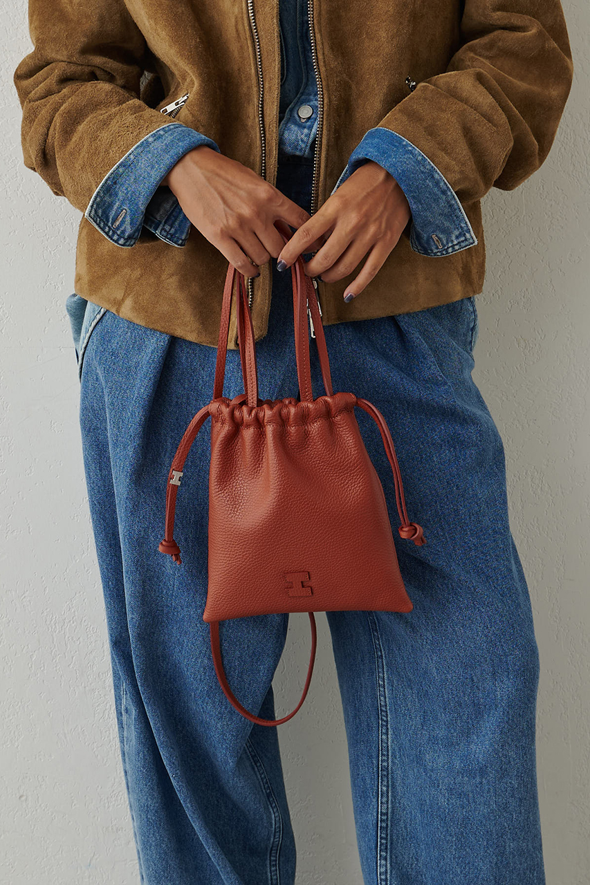 ミニマムなサイズ感ながら、貴重品はしっかりはいる優秀バッグ。巾着型デザインがパッと目を惹き、コーディネートのワンポイントとしても活躍してくれます。今季は派手すぎない馴染みが良い色ながらも、いつもと違うが叶うカラーバリエーション。ニュアンス感を感じるカラーが、上品にコーディネートを格上げしてくれます。