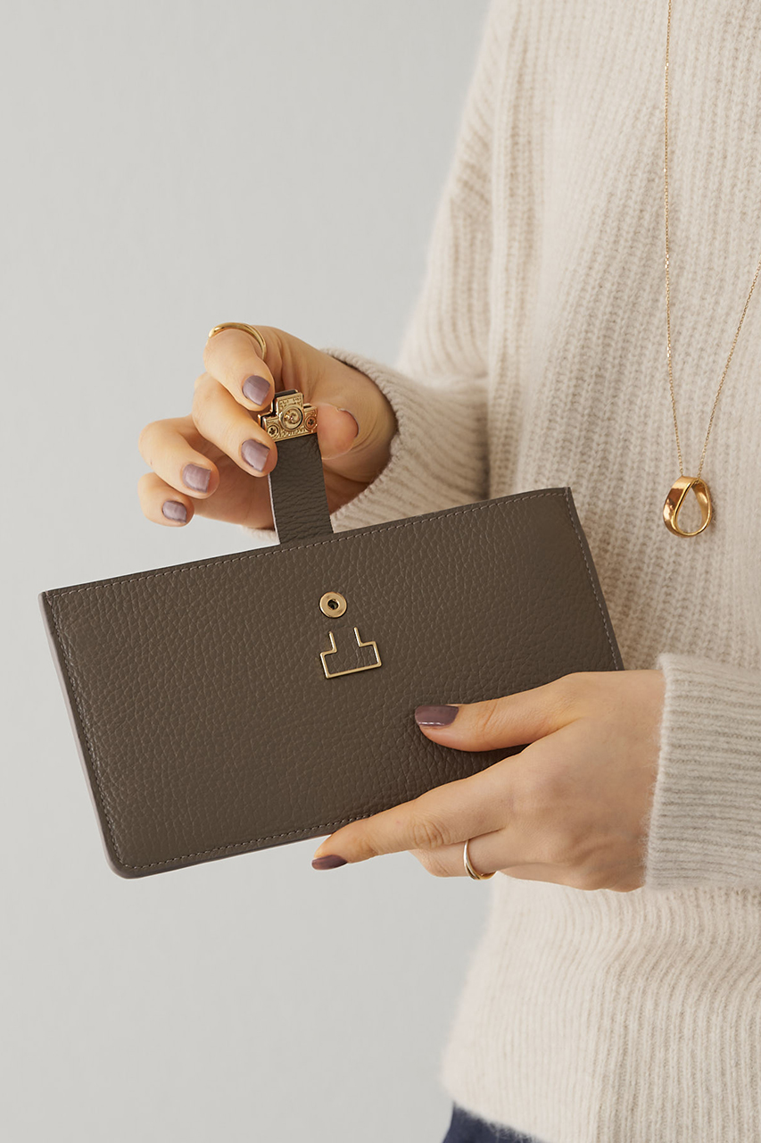 イアクッチが展開するお財布シリーズのなかで、一番薄マチなデザイン。マチ幅は1cmと無駄を削ぎ落し、よりスマートにお作りしました。カラーは”ちょっと気分が上がる”ようなニュアンスな色味ながらも馴染みのよさを兼ね備えたセレクトで、”リアルに使いやすい”も叶える仕上がりに。ミニバッグやトラベルでも、すっとバッグに忍ばせることのできるサイズ感です。