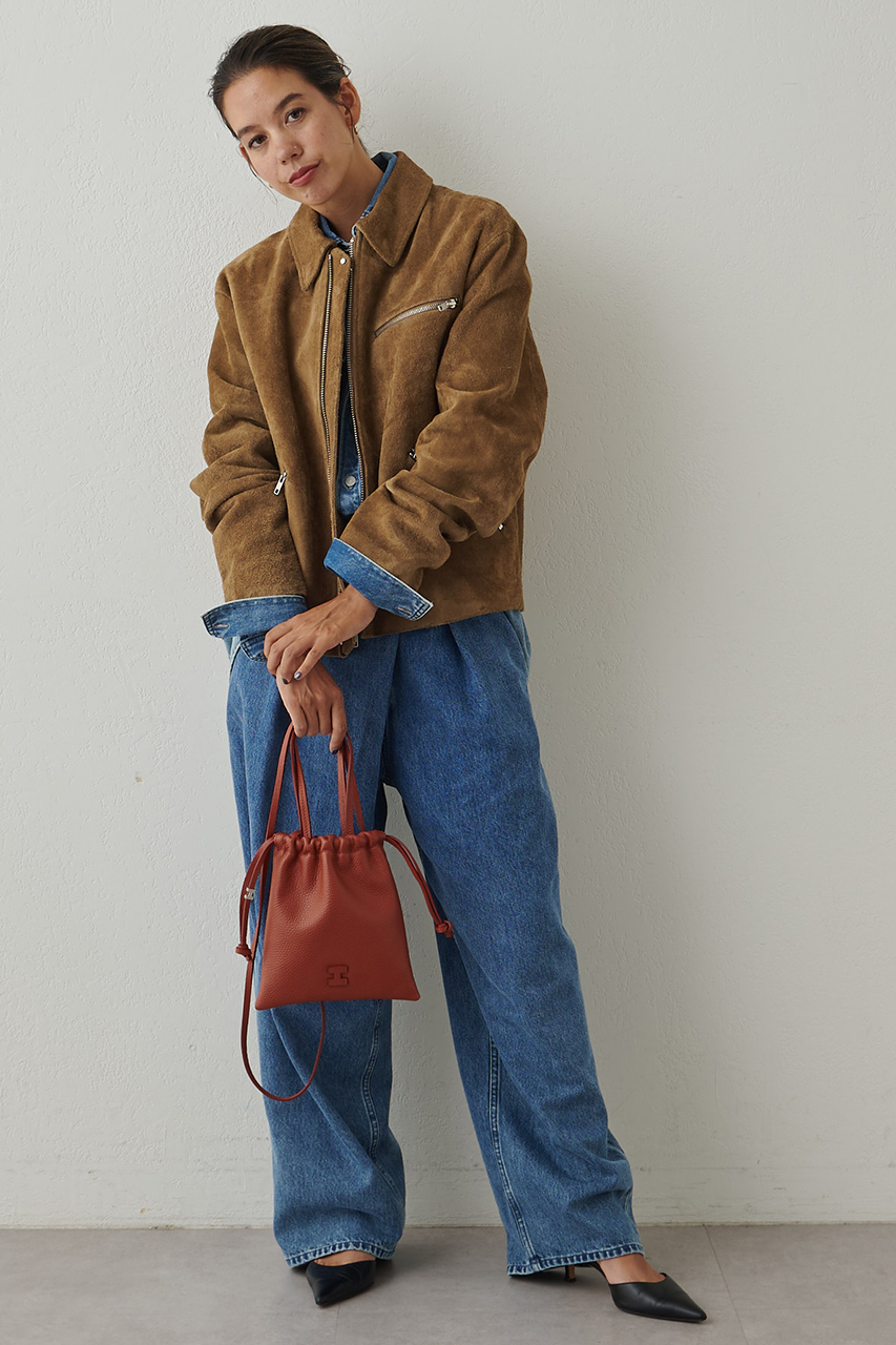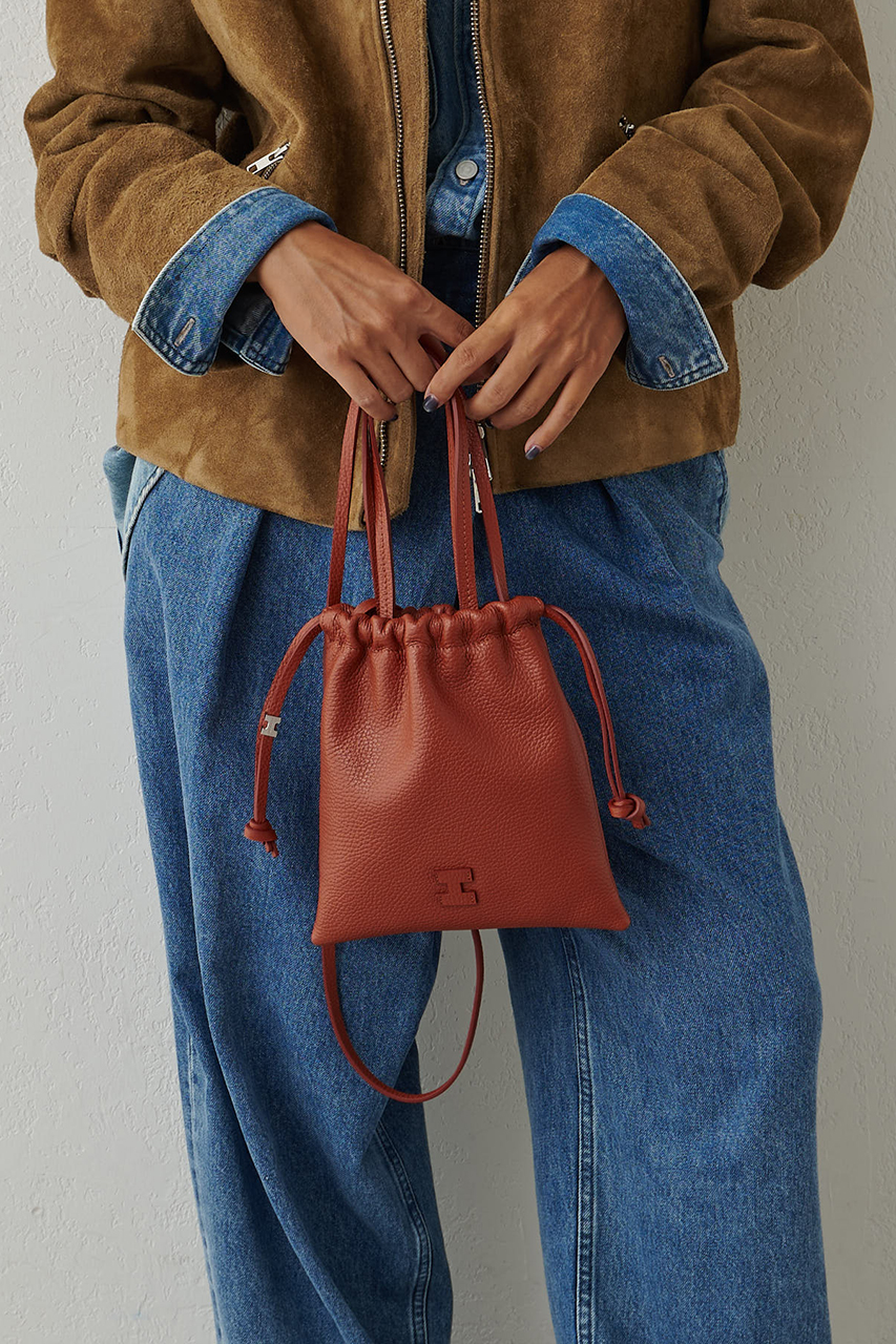 巾着型が印象的。薄マチでスタイリングにさらっとあわせられるようなラフさはありつつも、シボレザー仕様のきちんと感も残した、大人にこそぜひ合わせていただきたいショルダーバッグ。コンパクトでシーンやスタイリング問わずに使いやすいことから、ギフトにも人気の高いシリーズです。