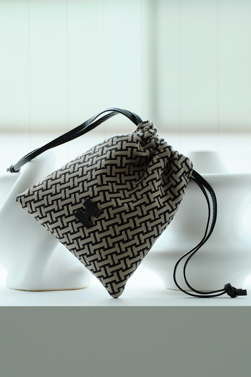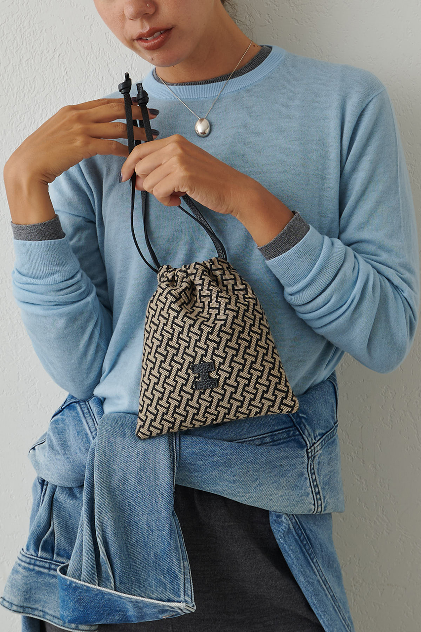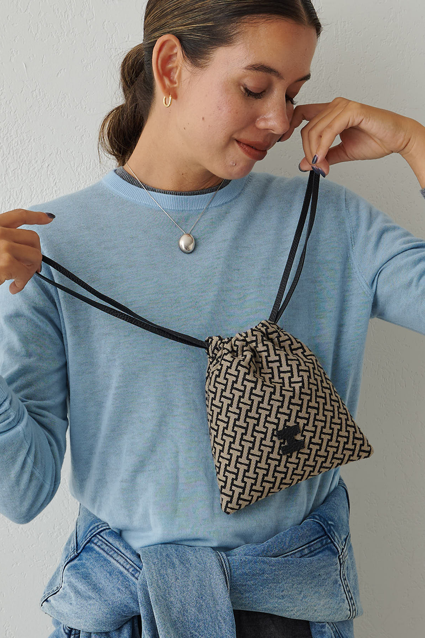 イアクッチの中では、特にギフトとしてラフに選びやすい。ジャガード生地でしっかり感のある上質な巾着ポーチです。バッグに入れるポーチとしても、ちょっとそこまでのミニバッグ代わりとしての使い方もおすすめ。