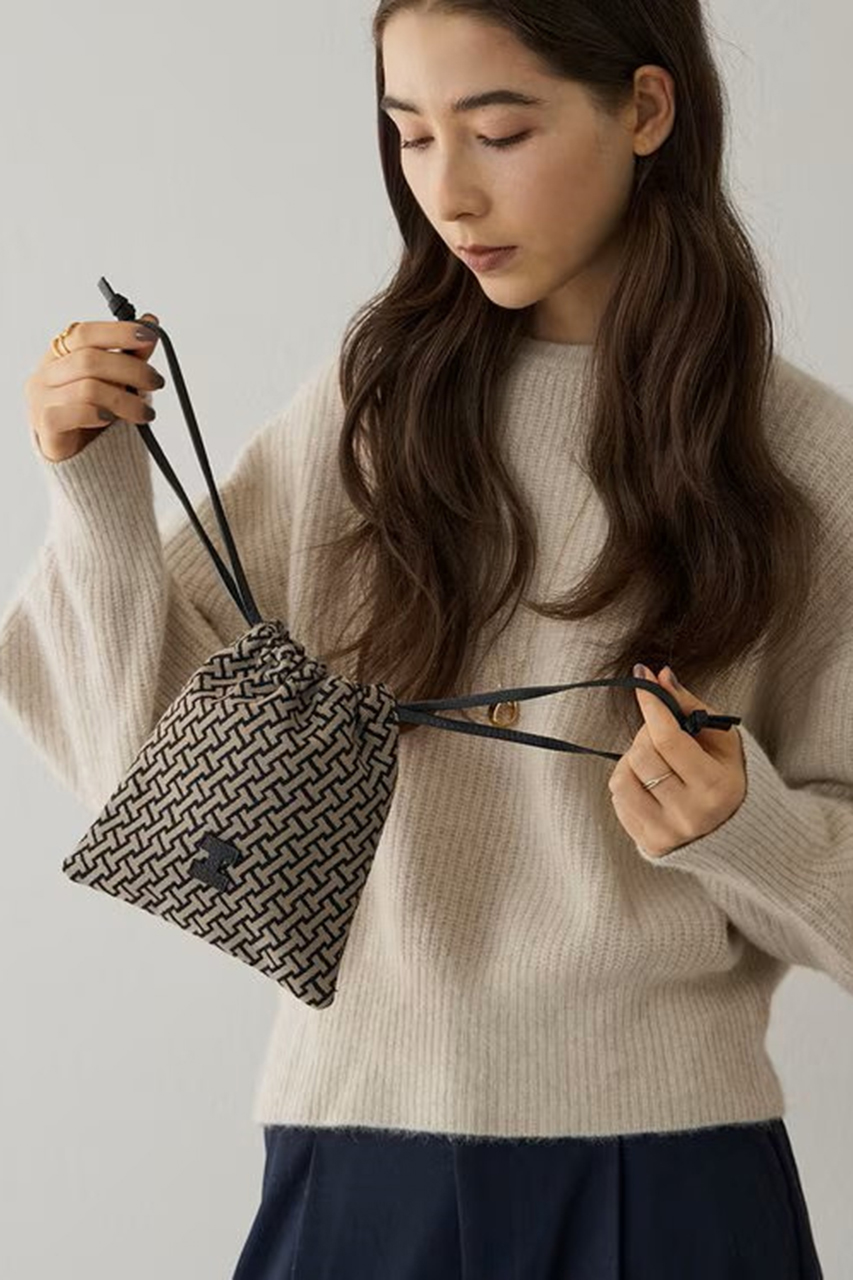 イアクッチジャパンオリジナルのモノグラムが上品に華やかさを演出してくれるポーチ型ショルダーバッグ。見た目は比較的コンパクトながらも、程よいマチ幅で収納力も抜群。普段ベーシックなアイテムが多い方でも持ちやすいデザインで、ちょこっとテンションの上がるような印象に仕上がりました。