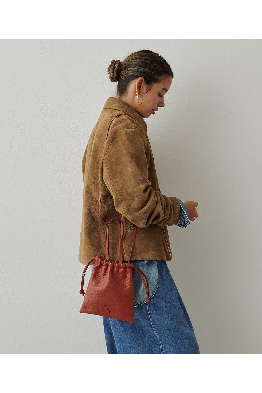 シーンに合わせてマルチに活躍してくれるショルダーバッグ。取り外し可能なショルダーバッグは、ポーチとして使うこともできる万能アイテム。巾着型で優し気な印象を与えつつも、オールレザー仕様で大人の上品さの残るバッグに仕上がりました。