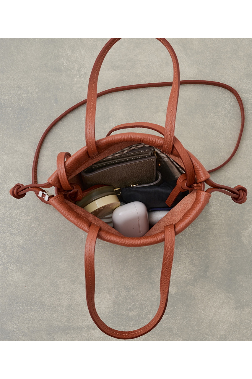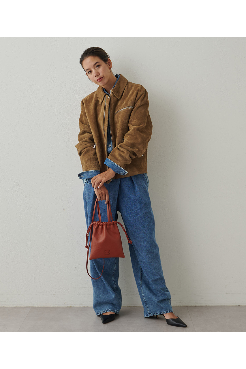 巾着型かつ柔らかなレザーを使用しているので、荷物も楽に取り出していただけます。