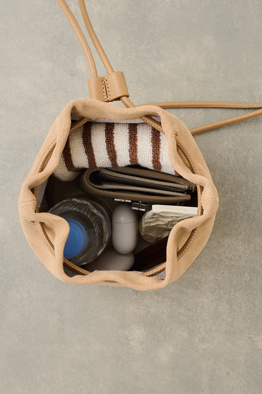 今シーズン初登場のドロストショルダーバッグはシボレザーとスエードレザーの2タイプ。程よい柔らかさを感じるような動きのある表面が、合わせるだけでこなれ感を演出してくれます。