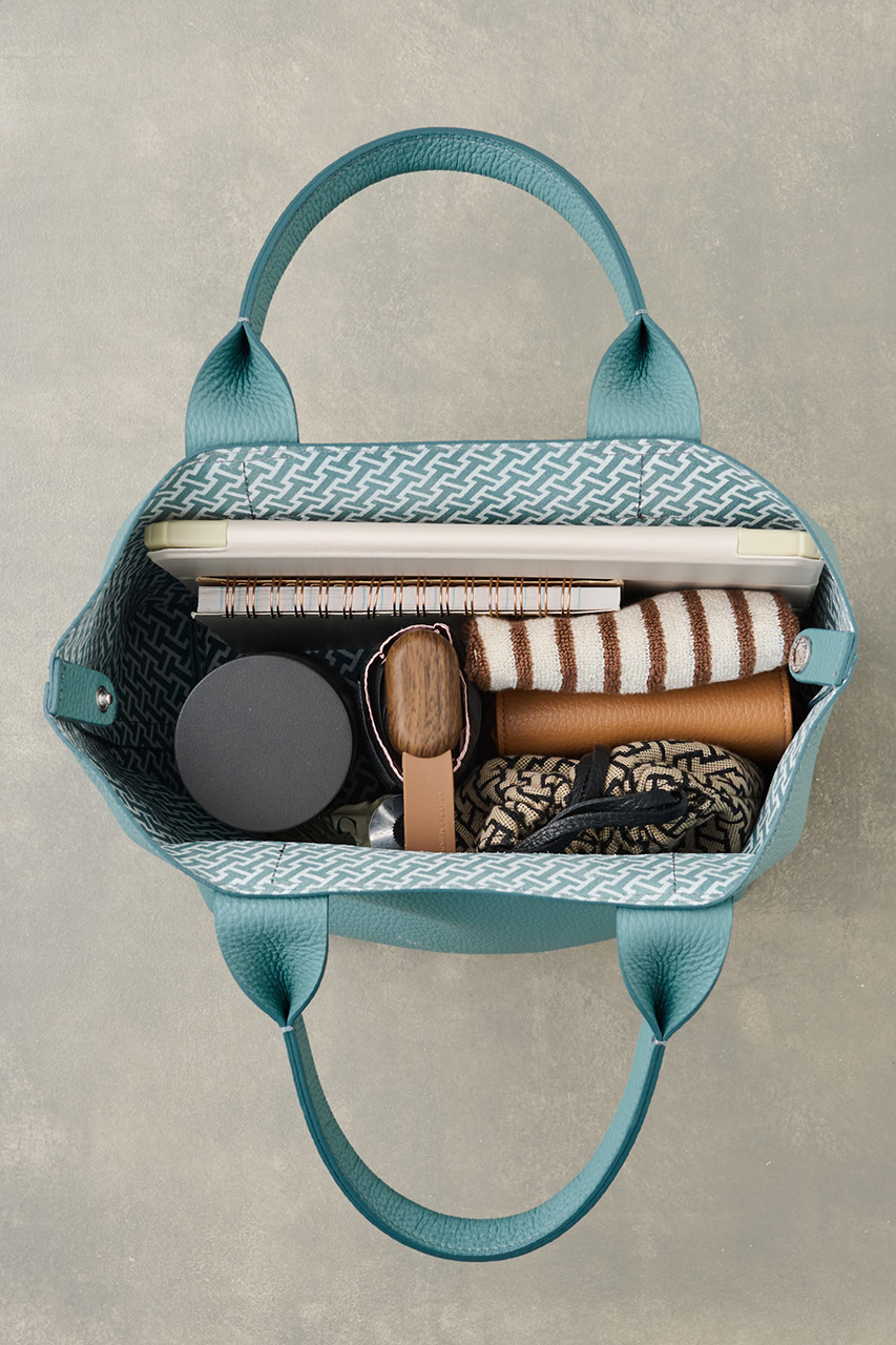 そしてもう一つ。内側からさりげなく覗くモノグラムプリントも隠れた魅力のひとつ。一見シンプルな見た目ですが、持っている時に気分をあげてくれるようなこのデザインには、イアクッチのこだわりが詰まっています。