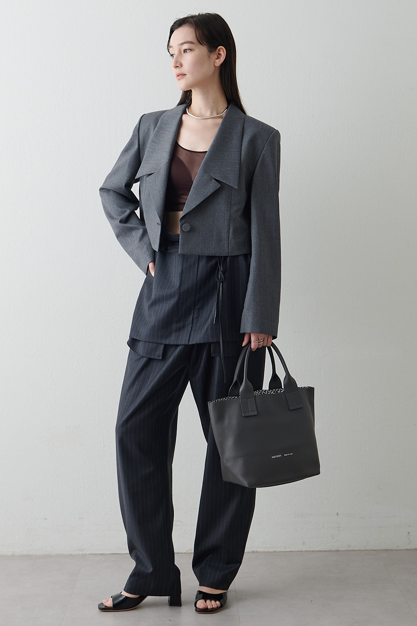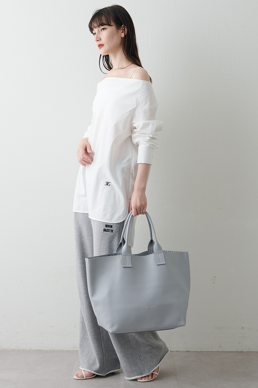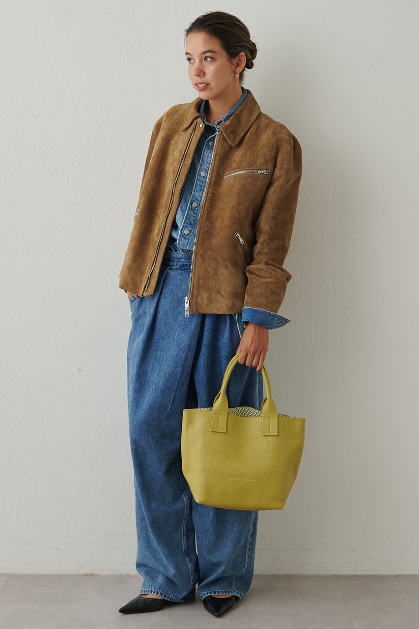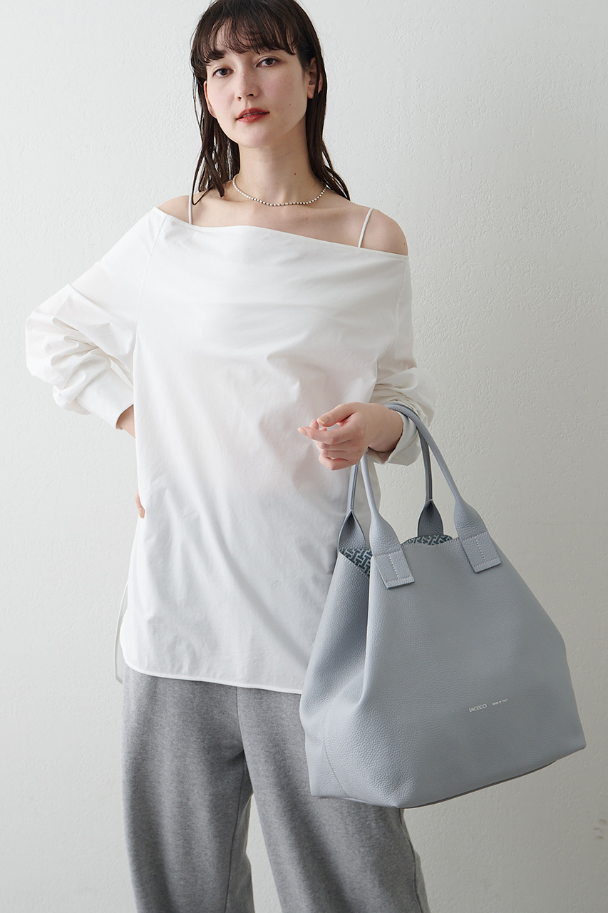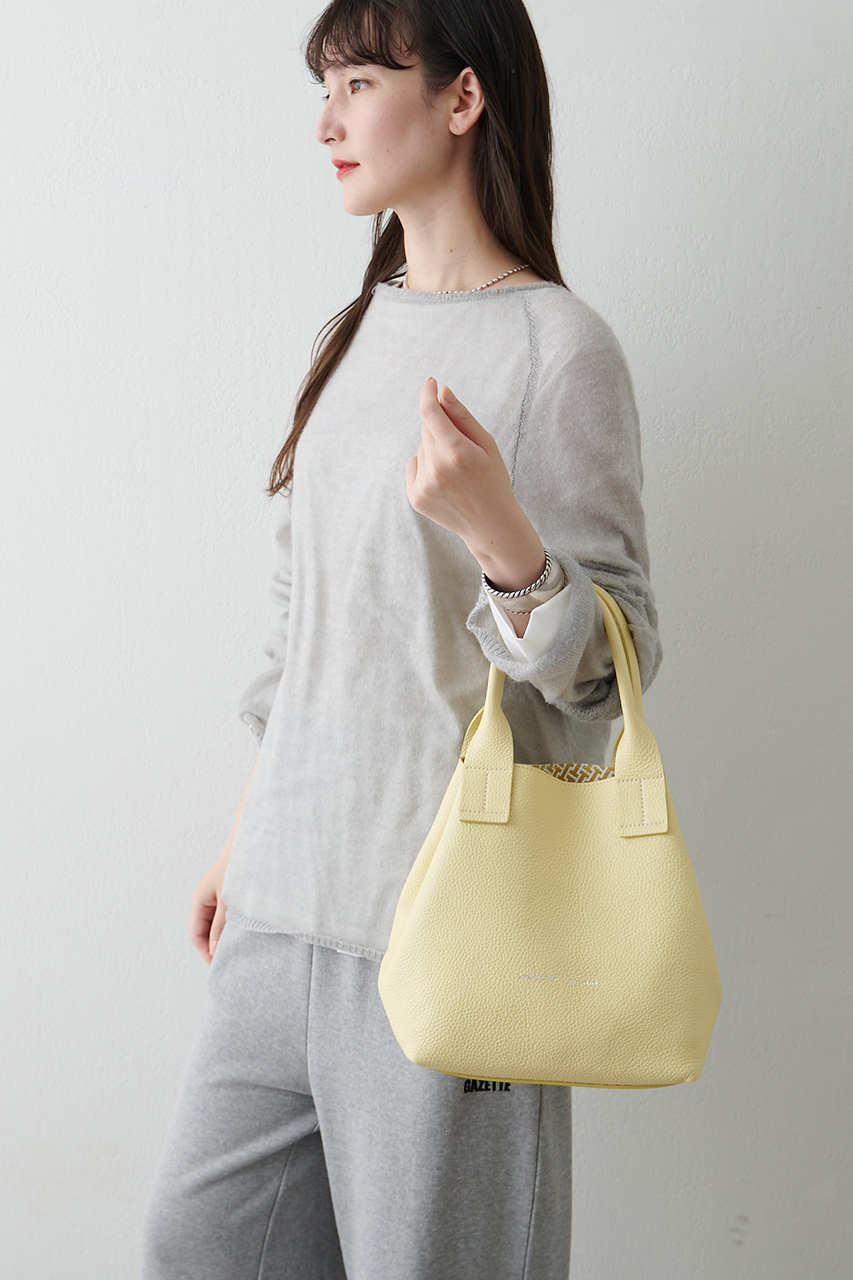 一枚革仕様のすっきりとした印象で、スタイリングに馴染みやすく、またカラーアイテムでもあわせやすいトートバッグ。ライフスタイルにあわせてサイズを選んでいただくのはもちろんのこと、スタイリングとの好みのバランス感で選んでいただくのも◎スナップボタンでフォルムチェンジしたスタイルは、よりコンパクトになるため、今時期のアウターでかさばる季節にもすっきりとした印象であわせていただけます。