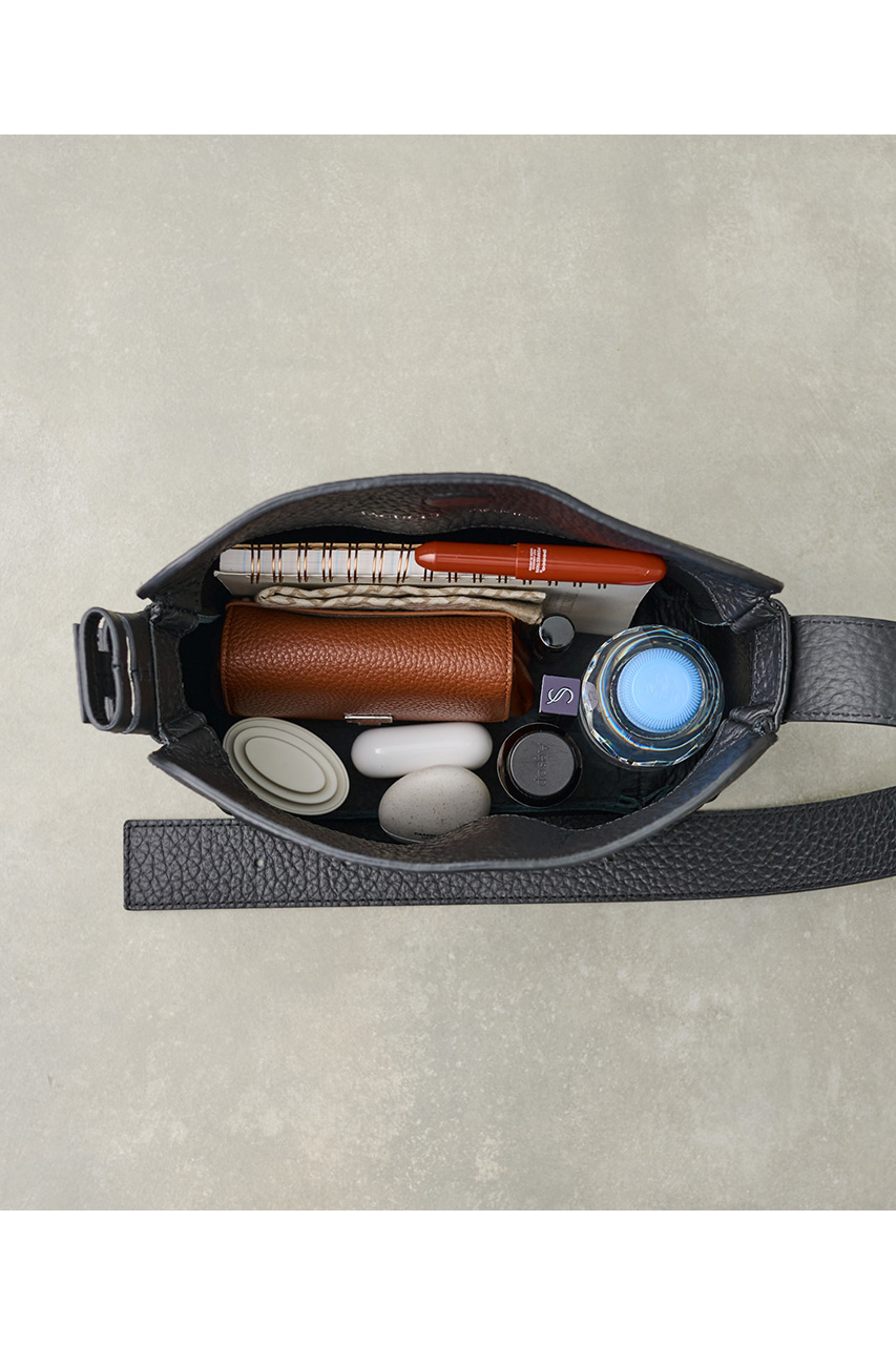 スタイリングのアクセントになるマイクロサイズながら、広めのマチで見た目以上の収納力を実現。