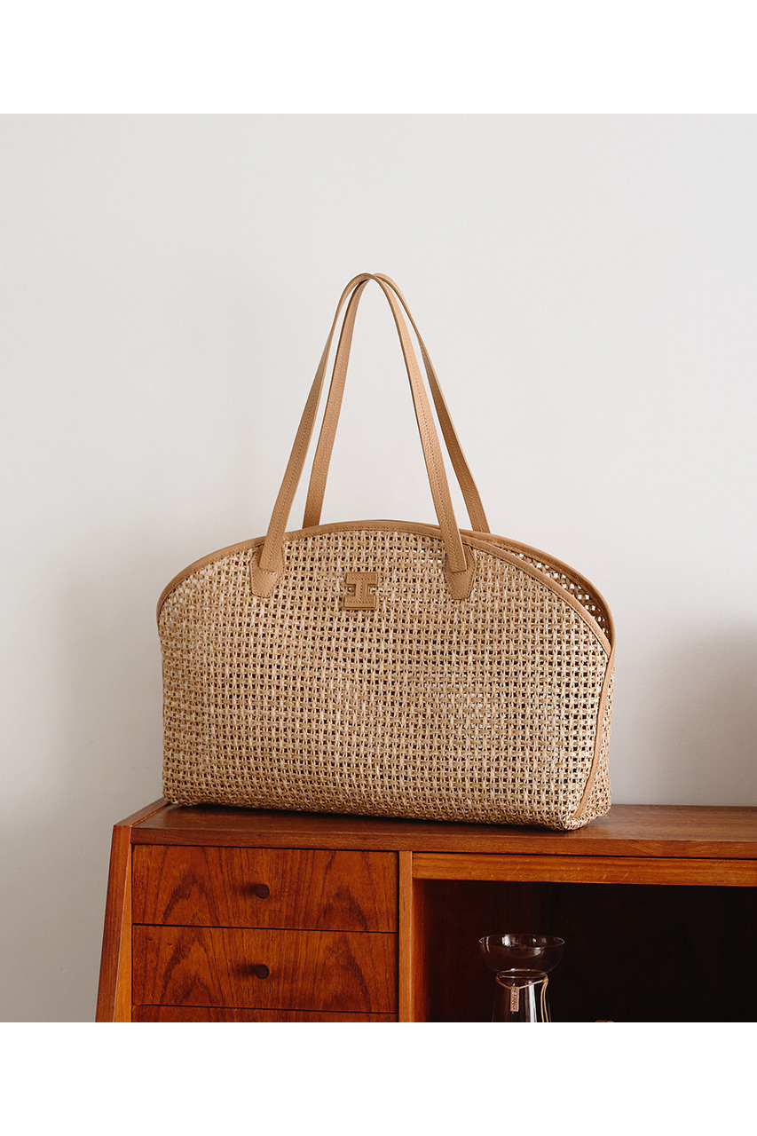 ストロー調素材に、上質なイタリアンレザーを組み合わせたエレガントな夏バッグです。