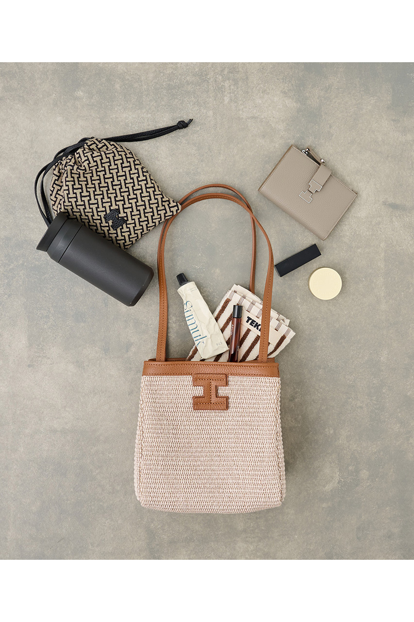 フロントにはブランドイニシャル「I」のレザーパーツをさりげなく配し、上品なアクセントに。