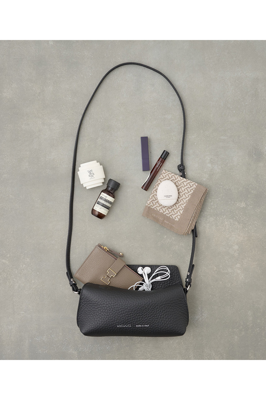 ラーナシリーズの魅力をコンパクトに楽しめるショルダータイプ。肉厚で柔らかなALCEレザーを使用した一枚革仕立てで、ミニマルなデザインながら上質な素材感が際立つアイテムです。シリーズの中でも最もコンパクトなサイズ感で、スマートフォンやミニウォレットなど必要最低限の荷物をすっきり収納できます。軽やかな印象で持てるため、身軽にお出かけしたい日やサブバッグとしても活躍します。サイズ展開が豊富なラーナシリーズの中でも、スタイリングにさりげないアクセントを添えてくれる存在。大きめサイズのトートと比べるとぐっとミニマルで、アクセサリー感覚で取り入れられるのが魅力です。気軽さと上質感を両立した、シリーズの新しい楽しみ方を提案してくれる一品です。