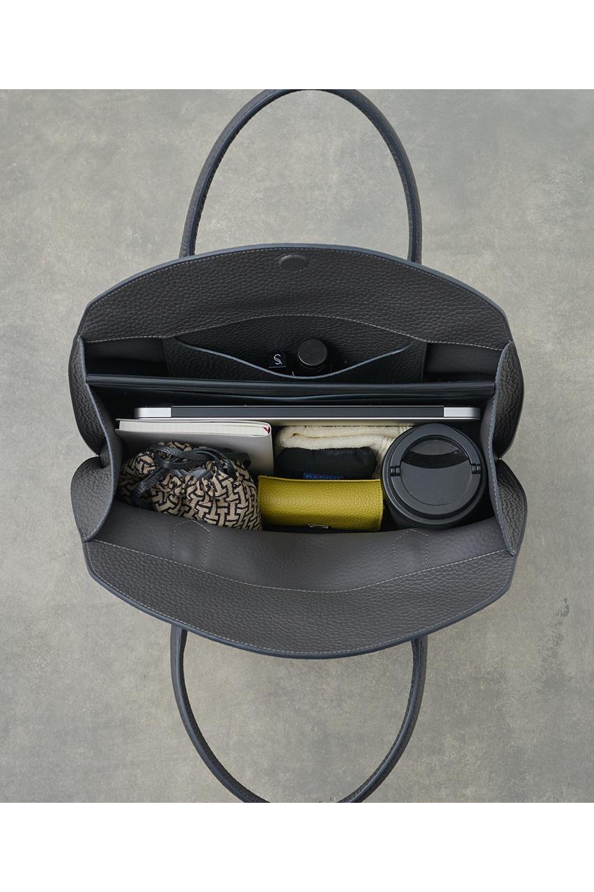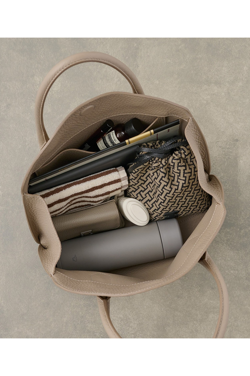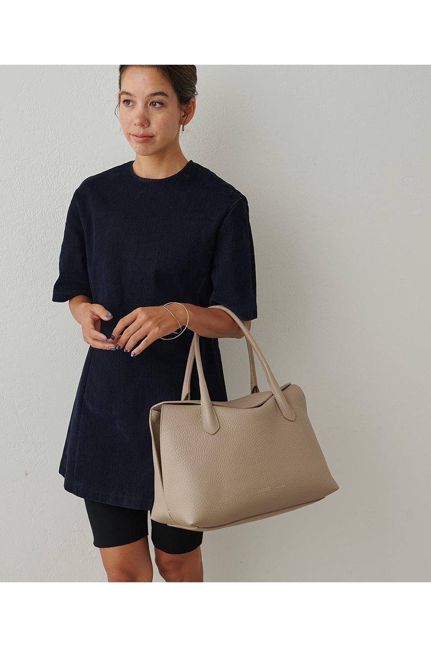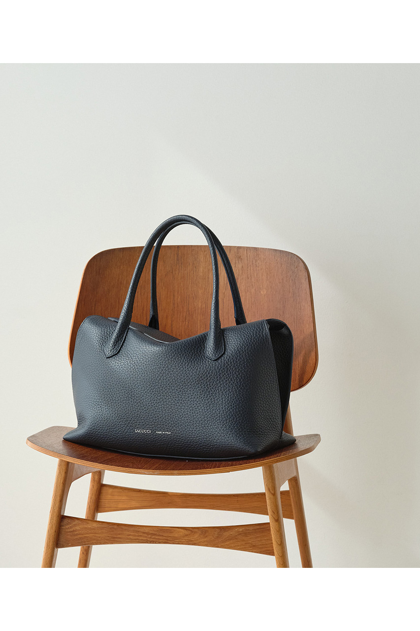 ラーナシリーズの中でも最大サイズとなるLは、収納力と存在感を兼ね備えた頼れるモデル。肉厚で柔らかなALCEレザーを使用した一枚革仕立てで、シンプルながらも上質感あふれる佇まいが魅力です。A4サイズの書類や13インチのPCもすっきり収まる容量を備え、通勤バッグや荷物が多い日にも活躍。シリーズの中では最もボリュームのあるサイズで、スタイリングに程よい存在感をプラスしてくれます。Mサイズよりも収納力が高く、実用性を重視したい方におすすめ。あえて荷物を少なめに入れてくたっと持つことで、レザーの柔らかな質感が際立ち、こなれた大人の雰囲気を演出してくれます。デイリーからお仕事シーンまで幅広く活躍する万能トートです。