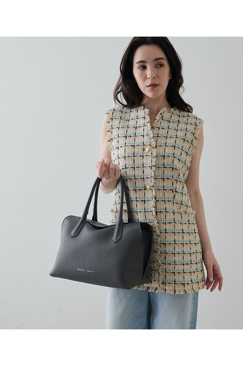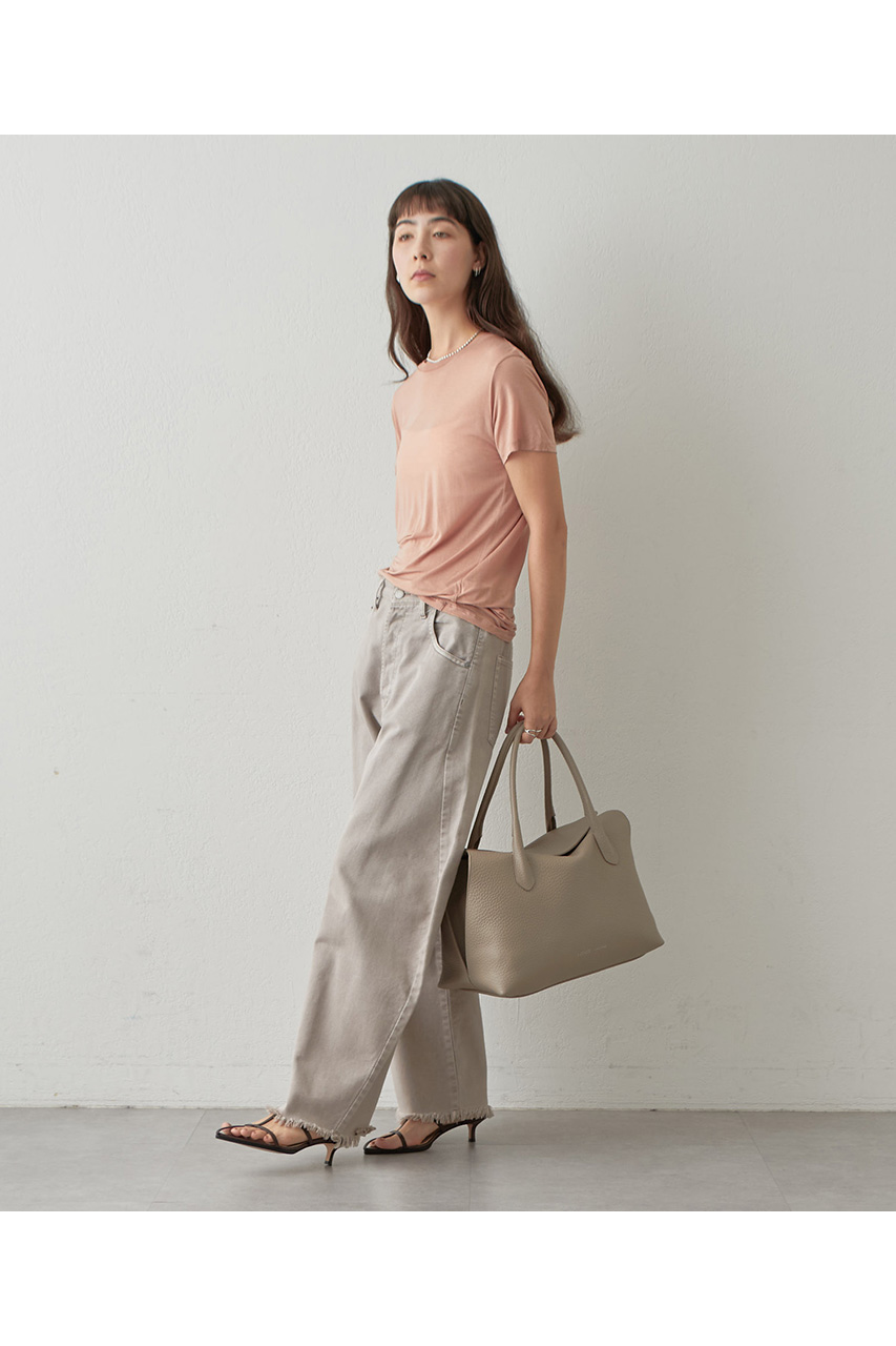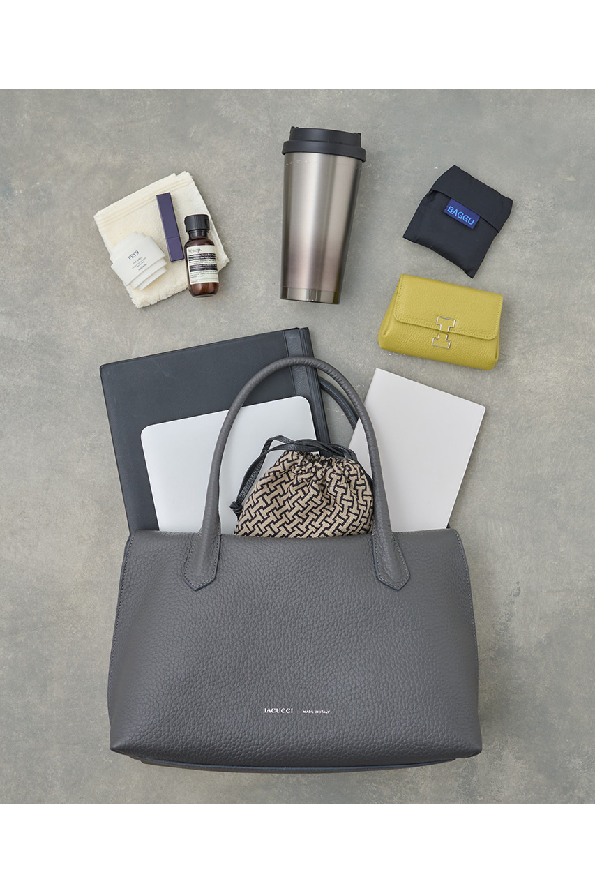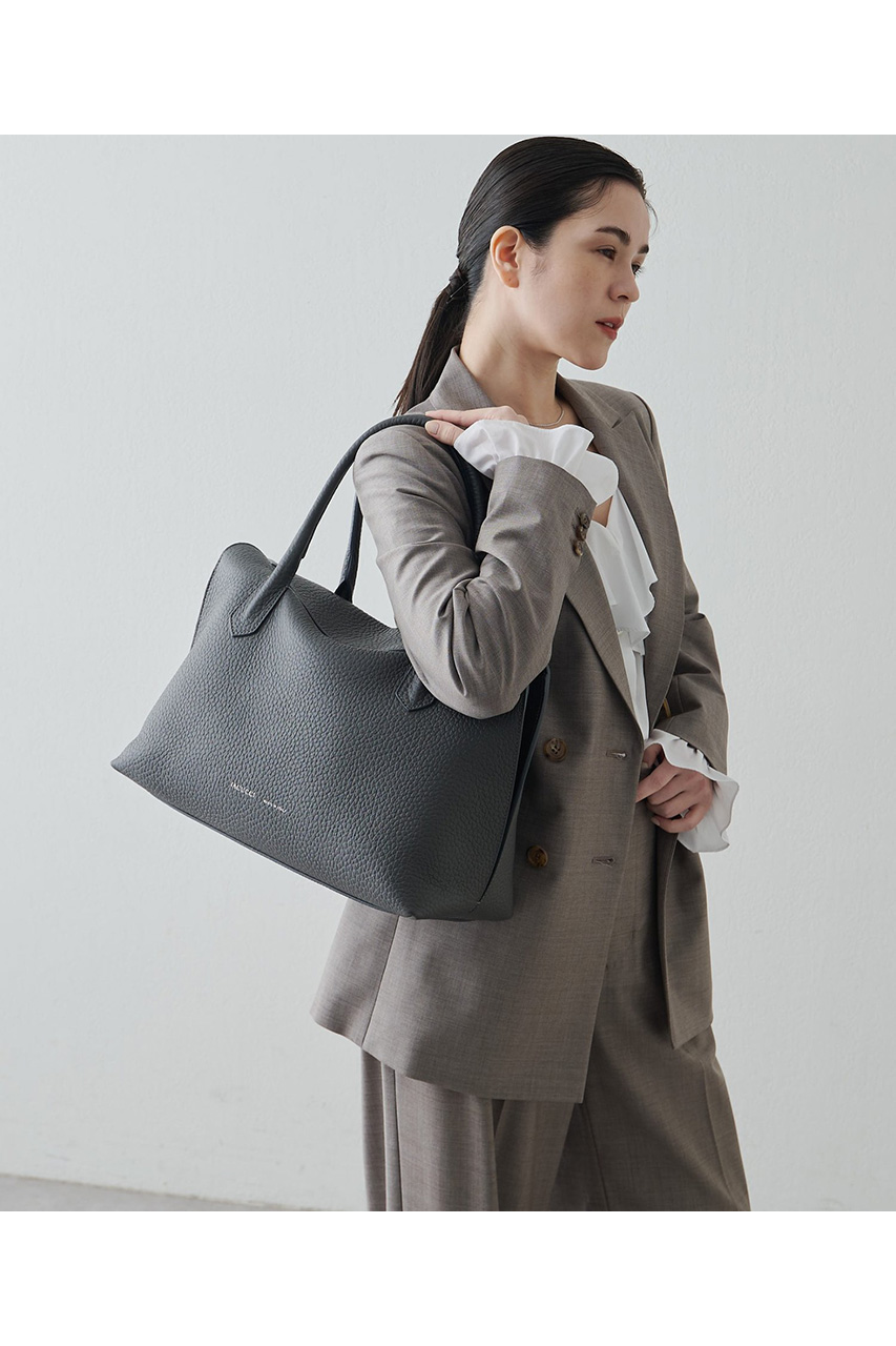 ラーナシリーズの中でも最大サイズとなるLは、収納力と存在感を兼ね備えた頼れるモデル。肉厚で柔らかなALCEレザーを使用した一枚革仕立てで、シンプルながらも上質感あふれる佇まいが魅力です。A4サイズの書類や13インチのPCもすっきり収まる容量を備え、通勤バッグや荷物が多い日にも活躍。シリーズの中では最もボリュームのあるサイズで、スタイリングに程よい存在感をプラスしてくれます。Mサイズよりも収納力が高く、実用性を重視したい方におすすめ。あえて荷物を少なめに入れてくたっと持つことで、レザーの柔らかな質感が際立ち、こなれた大人の雰囲気を演出してくれます。デイリーからお仕事シーンまで幅広く活躍する万能トートです。