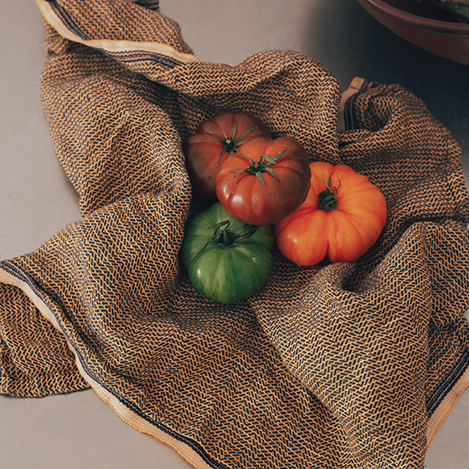 ディッシュクロスは食器や手拭きとして、または根菜類やパンを置くカゴの下に敷いて使っても◎。カラーや織りの表情を楽しみなら選んで。リネンのふきんは濡れた時にさらに水分を吸収するので、キッチンで大活躍。ふきんを冷水で洗い、余分な水を絞ってテーブルを拭いたり、こぼれた水を拭き取ったり、グラスの水切りなどでも重宝するはず。リネンは乾燥が早いので、雑菌が繁殖しにくいのもうれしいポイント。