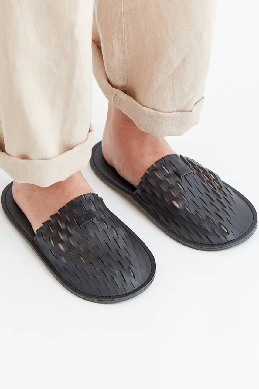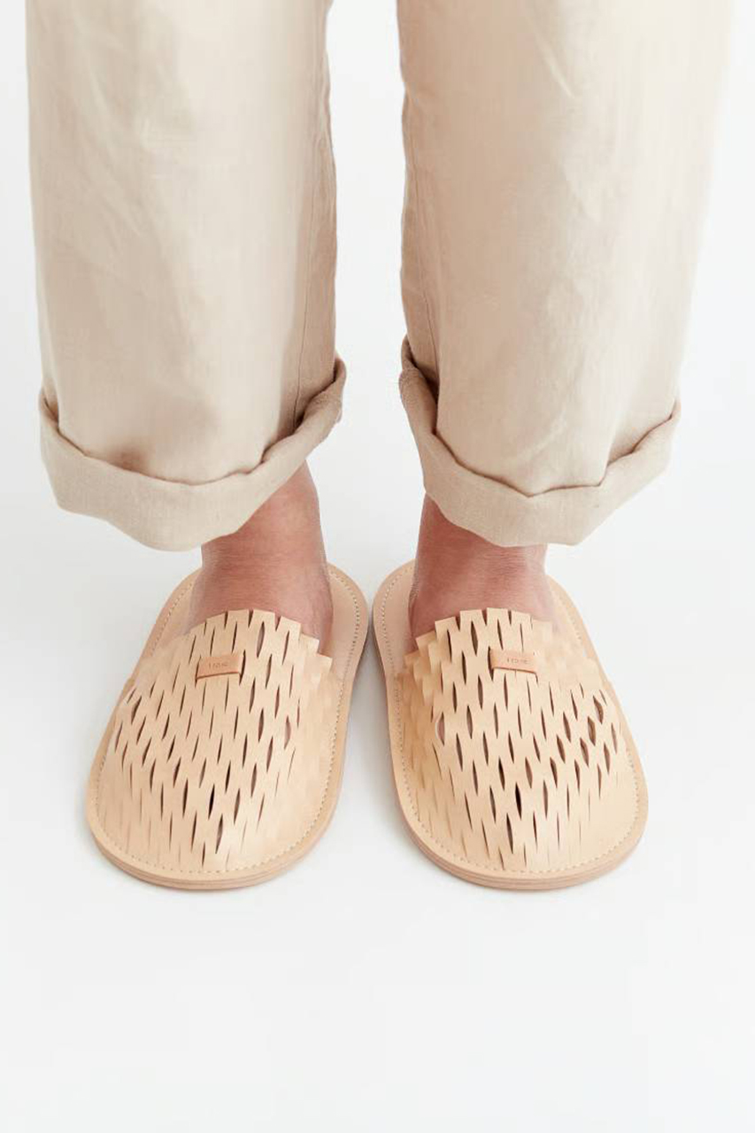 グラスなどの緩衝材として使われるクッションペーパーからインスパイアされた ""net"" シリーズのルームシューズ。