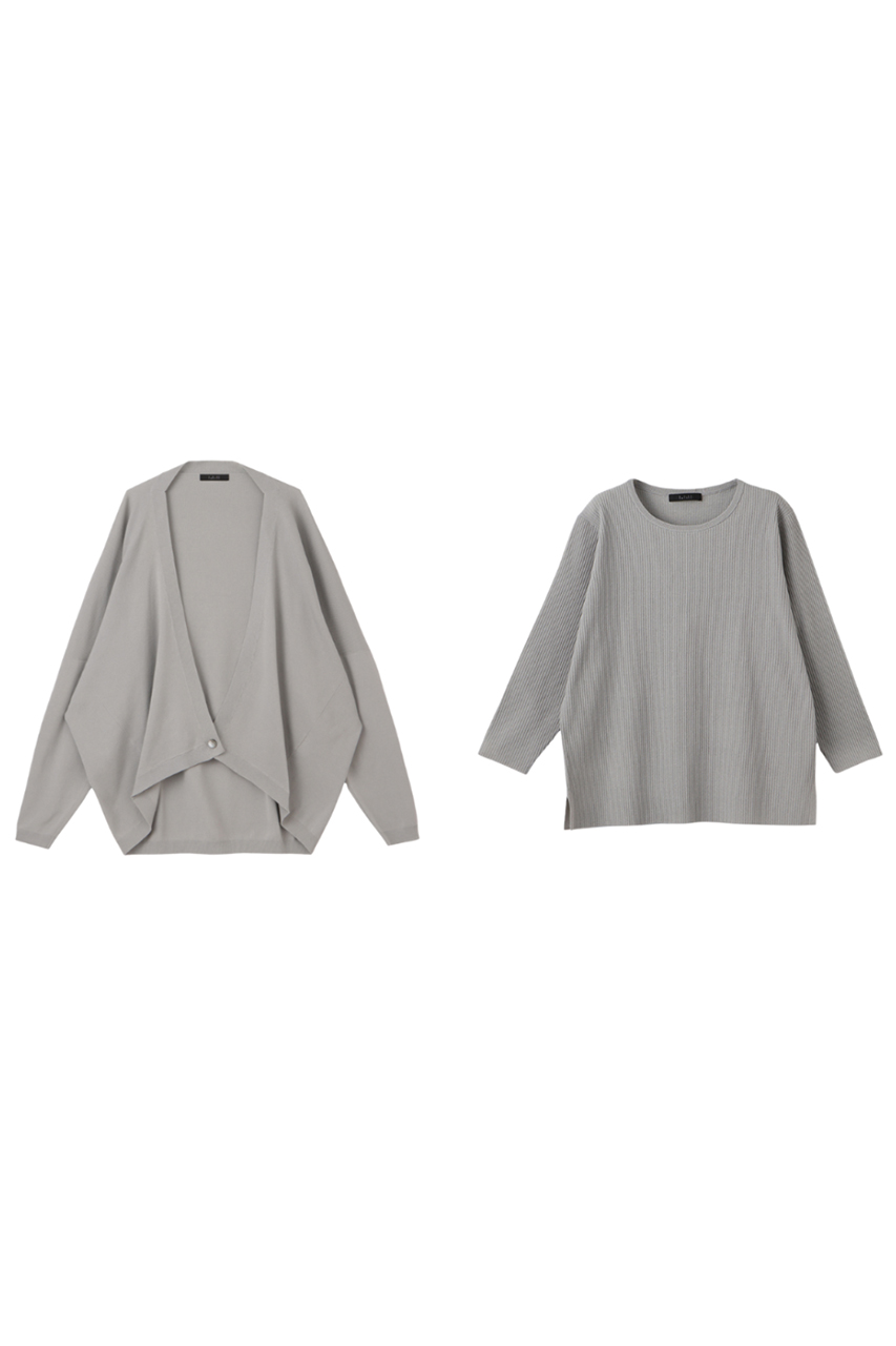 リネンのナチュラルな風合いと機能素材の快適さを掛け合わせた、エアリーで凛とした質感のサマーカーディガンとタンクトップのセットです。