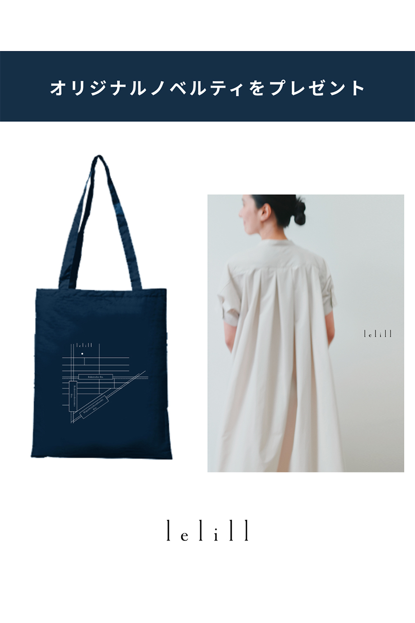 ブランドのフィロソフィーが息づく、lelill唯一の直営店「レリル東京」のオリジナルマップグラフィックをプリントした"レリルオリジナルトートバック"と、これから展開するレリル夏のカタログをいち早くお届けいたします。