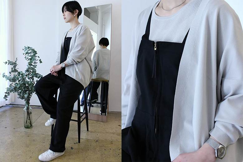 デザイナーの児玉も「こんな涼しいサロペットある?」と言うくらい、夏でも涼しくはけるサロペットを目指して完成したサロペット。