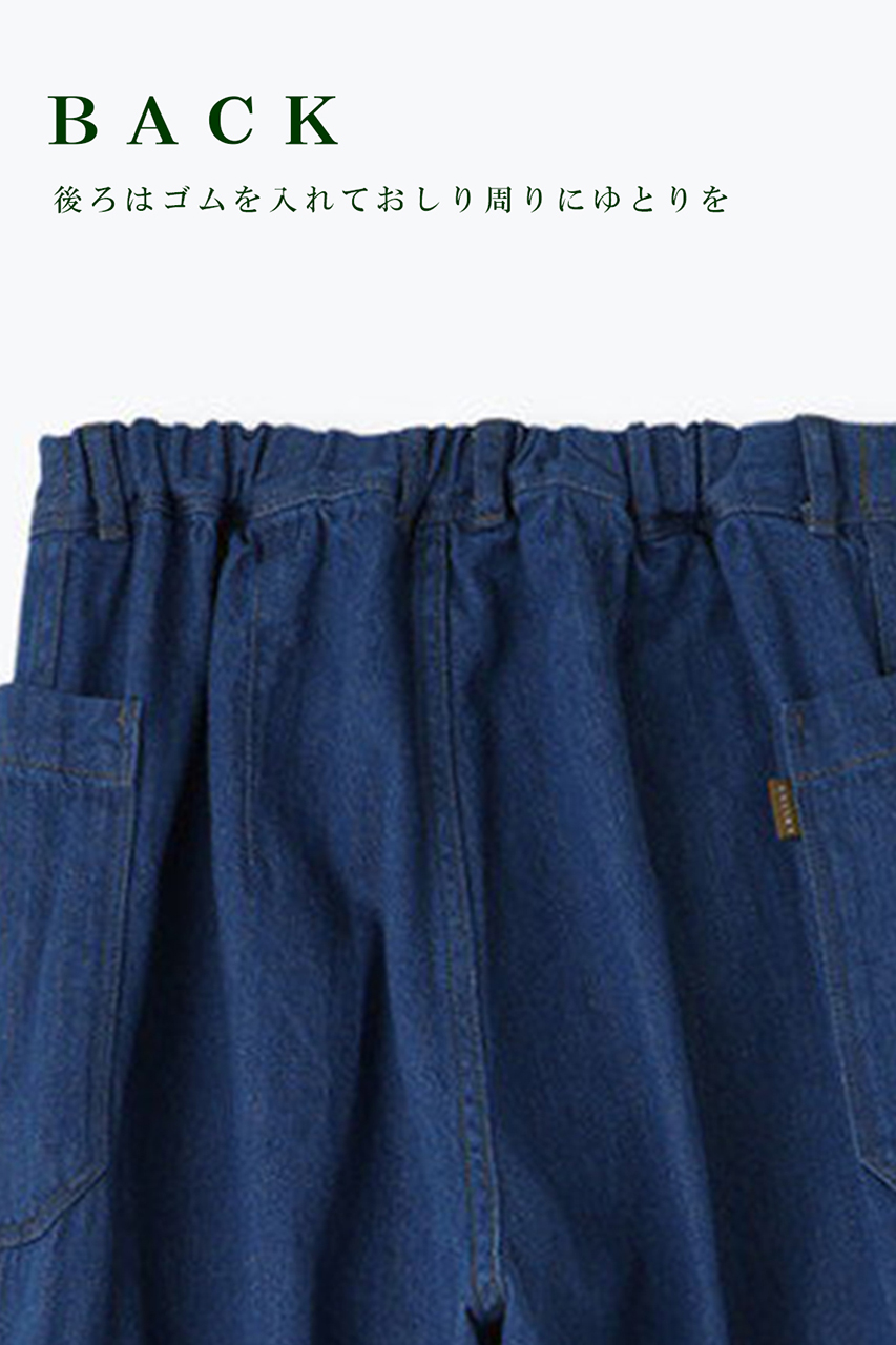 ウエスト部分は前はすっきりと見せつつも後ろにはゴムを入れて、おしり周りにゆとりを持たせたデザイン。程よいゆとりが生まれ、幅広い体型の方にお楽しみいただける“大人のランチパンツ”が完成しました。